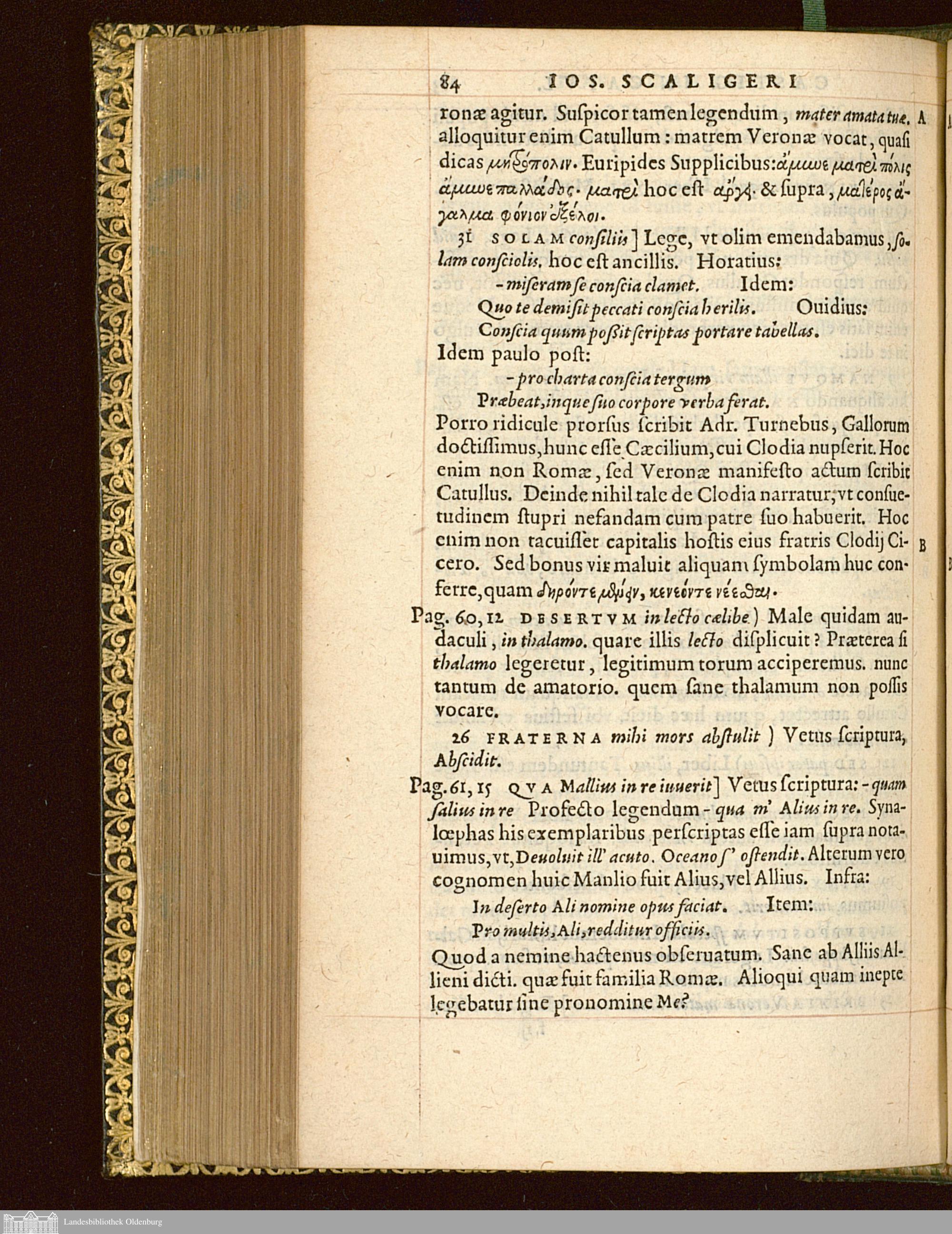 Catvlli,|| Tibvlli,|| Properti[i]|| Nova Editio.|| Iosesphvs Scaliger|| Ivl. Caesaris F.|| recensuit.|| Eiusdem in eosdem Castigationum Liber.|| Ad|| Cl. Pvteanvm Consiliarium Regium|| in suprema Curia Parisiensi.