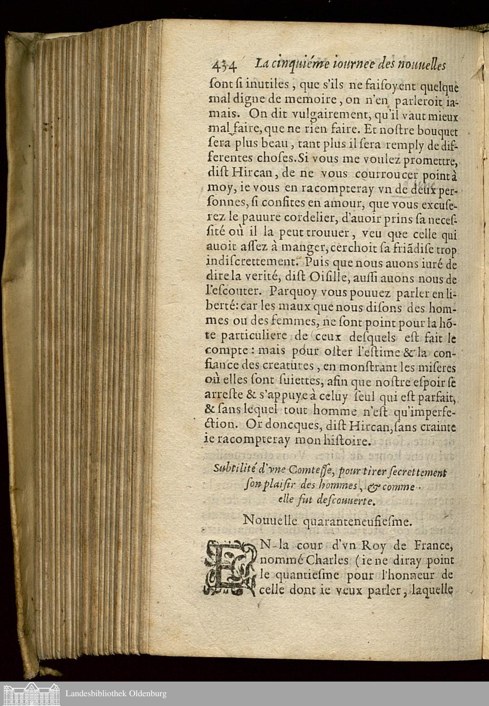 La Hvitiesme Iovrnee Des Novelles de La Royne de Naurre.