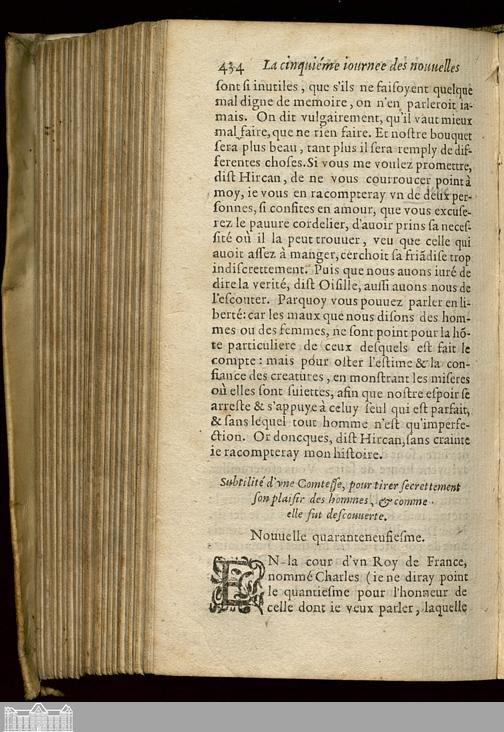 La Cinqviesme Iovrnee Des Novelles De La Royne de Nauarre.