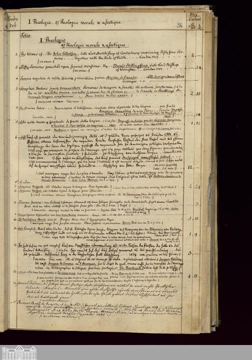 Vol. 1[,1] (1780) I. Theologie. [- IV. Philosophie, & Mathematiques.] [CIM I 88 MM: 1]