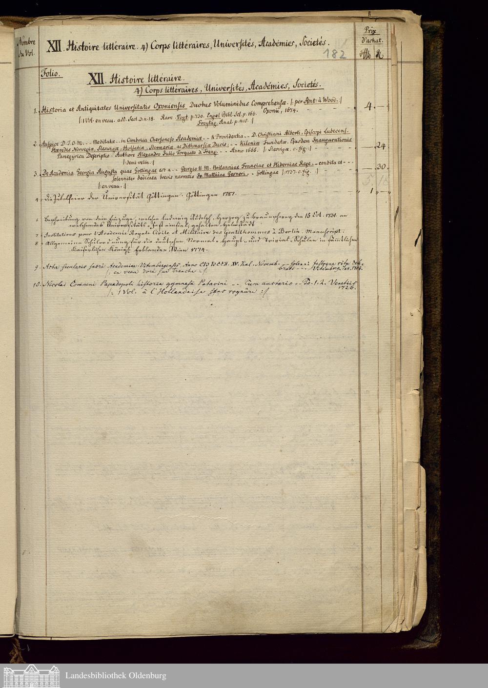 XII. Histoire litteraire. [Wissenschafts- und Gelehrtengeschichte]