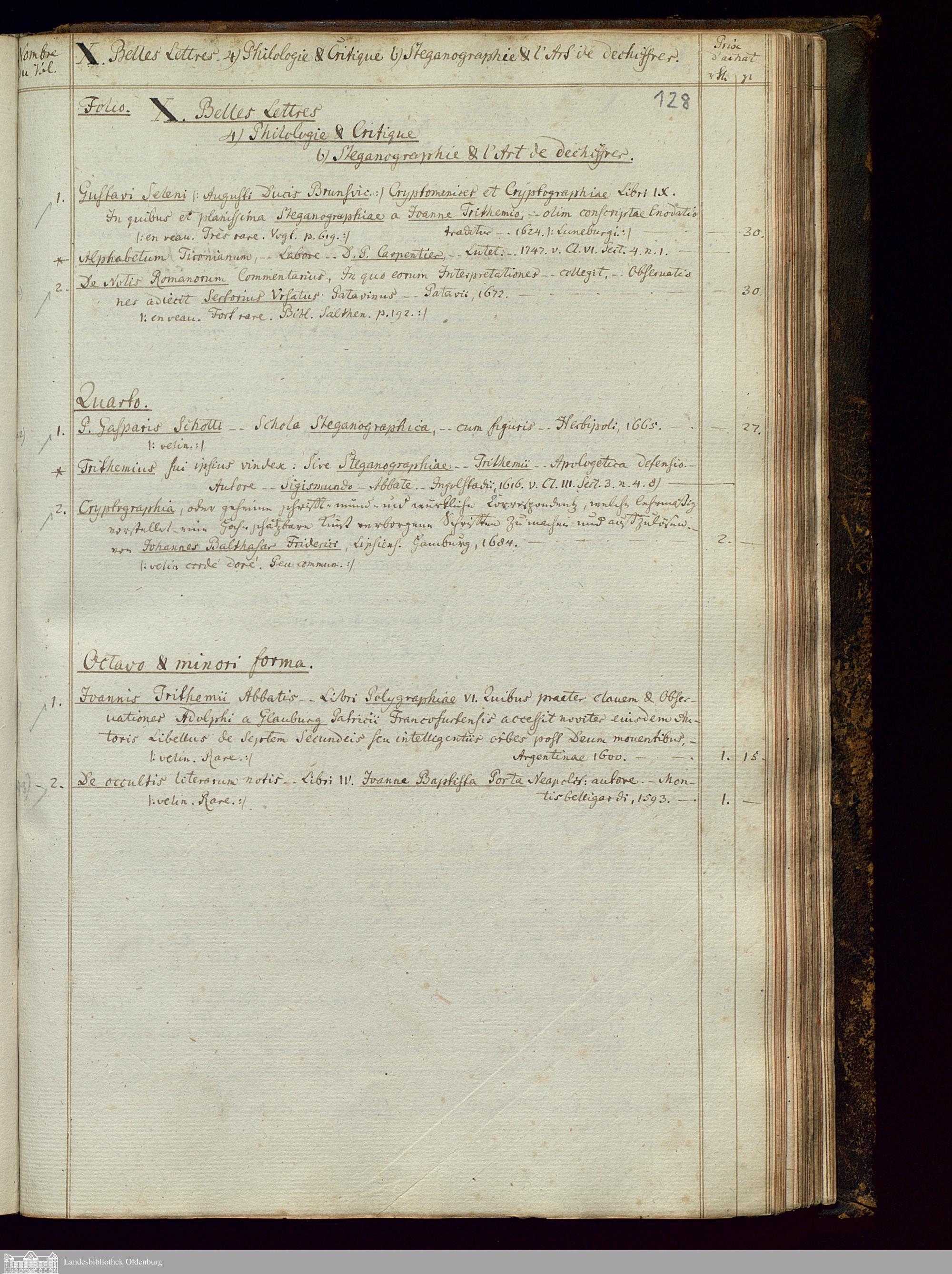 b) Steganographie & l'Art de dechiffrer. [Stenographie und Methodik des Dechiffr...
