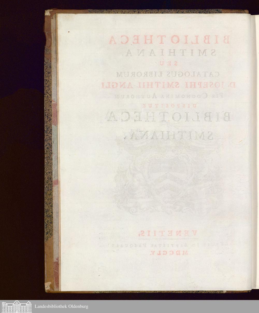 Bibliotheca Smithiana, Seu Catalogus Librorum D. Josephi Smithii Angli Per Cognomina Authorum Dispositus