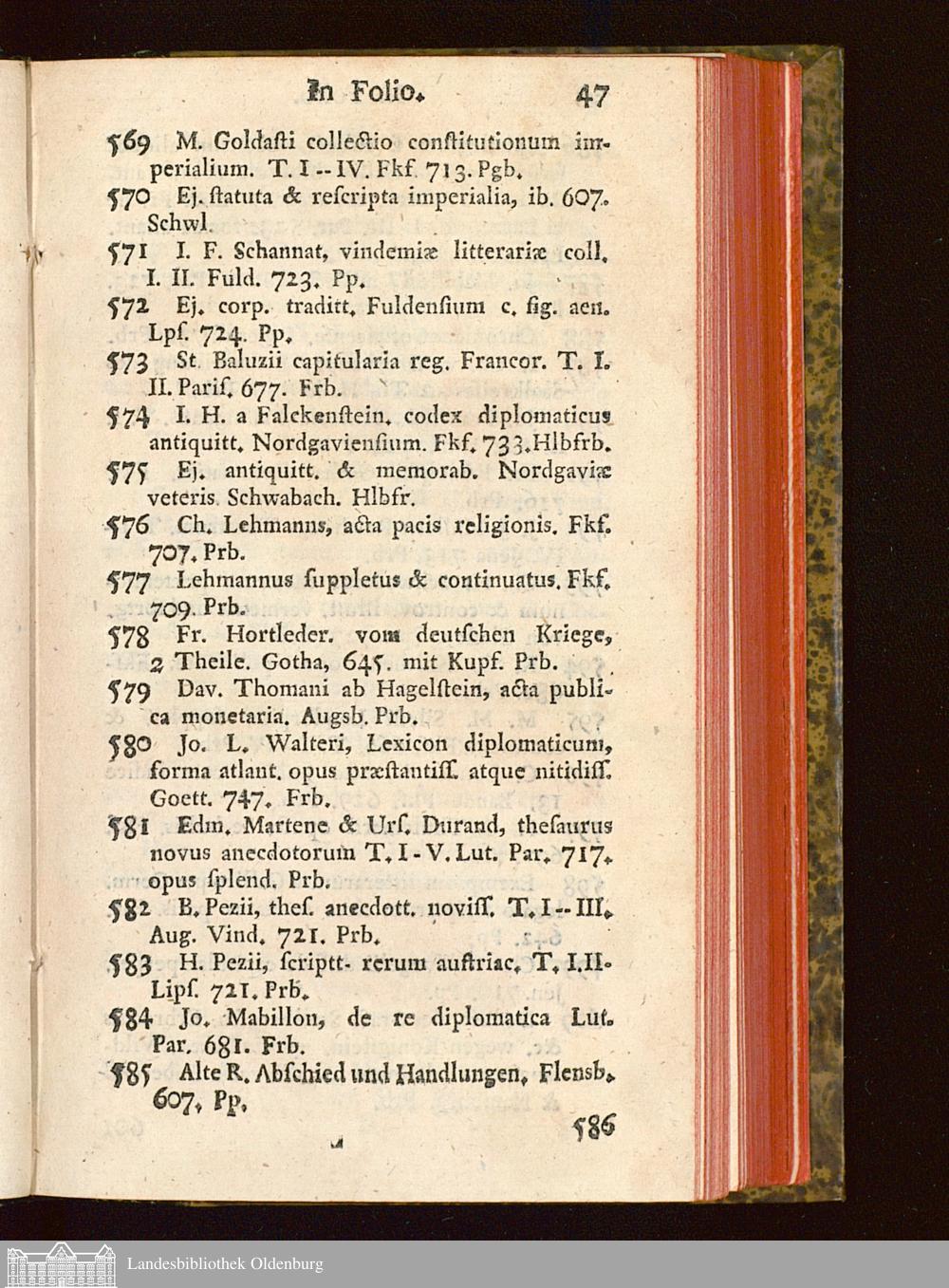 Ps. 1 (1788) Cuius Adparatus Die IV. Febr. Sequ. 1788. ... In Eiusdem Aedibus ... Publica Auctionis Lege Distrahendus