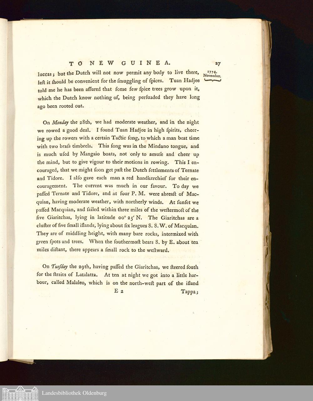 A Voyage To New Guinea, And The Moluccas, From Balambangan: Including An Account of Magindano, Sooloo, and other Islands; And Illustrated With Thirty Copperplates ; Performed In The Tartar Galley, Belonging To The Honourable East India Company, During the Years 1774, 1775, and 1776, By Captain Thomas Forrest. To Which Is Added, A Vocabulary Of The Magindano Tongue