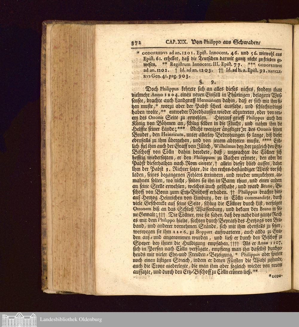 Hrn. Burcard Gotthelff Struvens, Hochfürstl. Sächsis. Ernestinischer Linie gesamten Raths, ... Erläuterte Teutsche Reichs-Historie : Von der Teutschen Ursprunge an, biß auff jetzige Zeiten ; Aus den bewehrtesten und besten Scribenten zusam̄en getragen, und mit derer angeführten Beweißthümern jedes Orths bestärcket / Hiebevor in Lateinischer Sprache heraus gegeben, Anjetzo aber zu bequemern Gebrauch Ins Teutsche übersetzt, Von P. Z. V. N. [d. i. Johann Ehrenfried Zschackwitz]