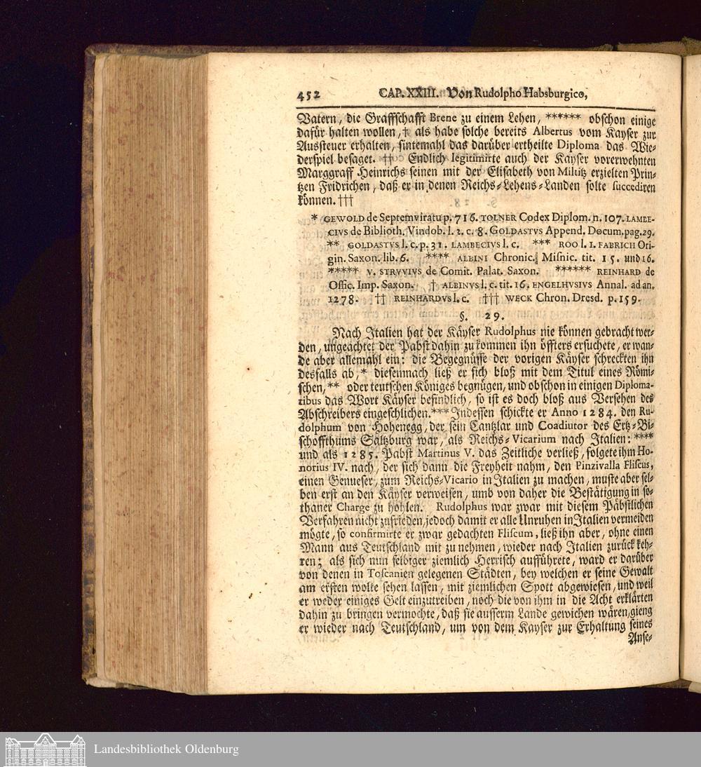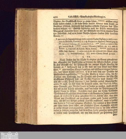 Hrn. Burcard Gotthelff Struvens, Hochfürstl. Sächsis. Ernestinischer Linie gesamten Raths, ... Erläuterte Teutsche Reichs-Historie : Von der Teutschen Ursprunge an, biß auff jetzige Zeiten ; Aus den bewehrtesten und besten Scribenten zusam̄en getragen, und mit derer angeführten Beweißthümern jedes Orths bestärcket / Hiebevor in Lateinischer Sprache heraus gegeben, Anjetzo aber zu bequemern Gebrauch Ins Teutsche übersetzt, Von P. Z. V. N. [d. i. Johann Ehrenfried Zschackwitz]