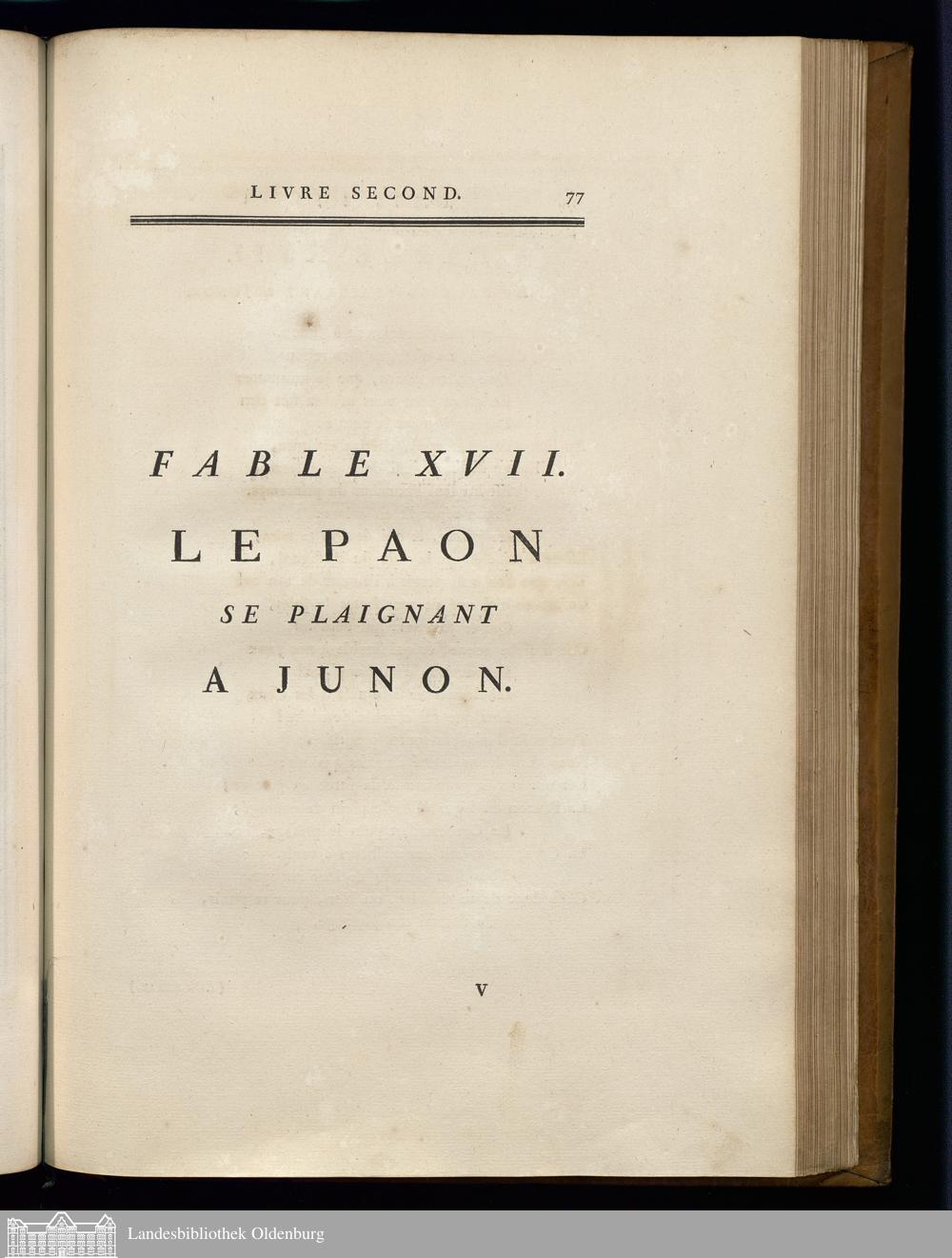 Fable XVII. Le Paon Se Plaignant à Juno.