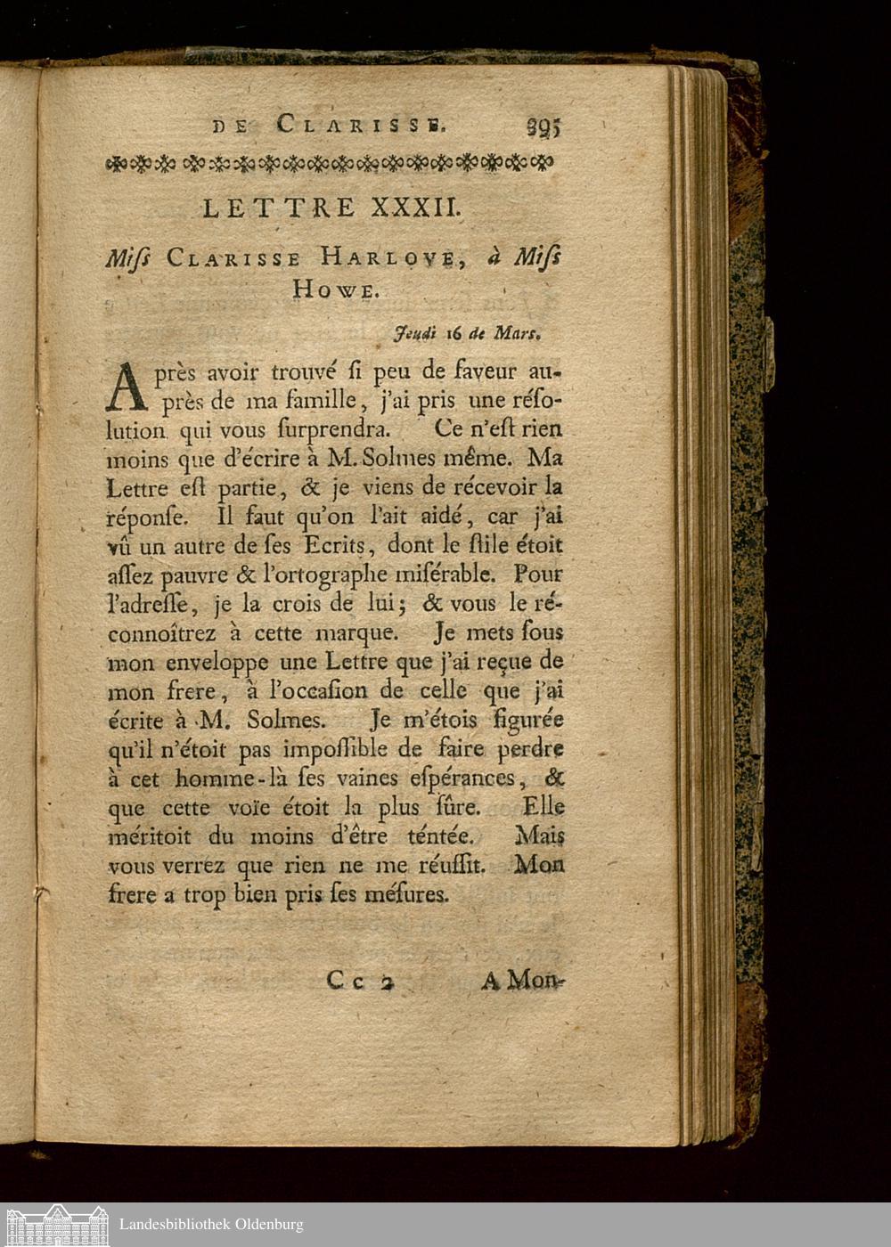 Lettre XXXII. Miss Clarisse Harlove, à Miss Howe.