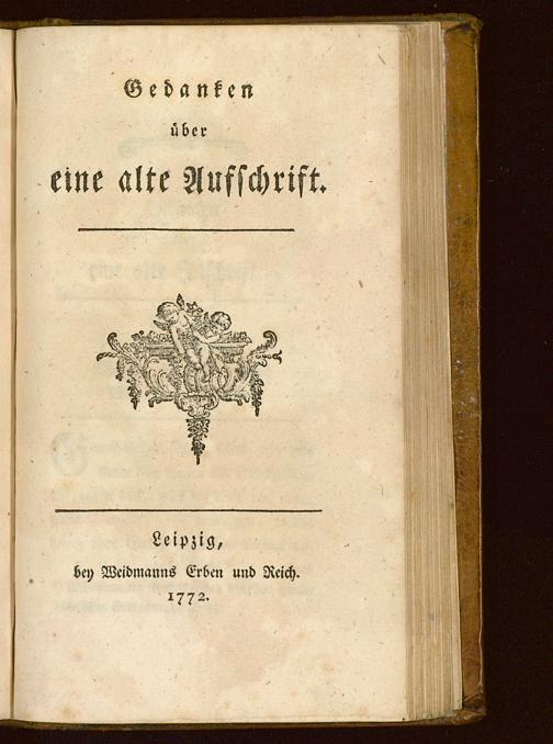 Vorlage des Erscheinungsvermerks: Leipzig, bey Weidmanns Erben und Reich. 1772.