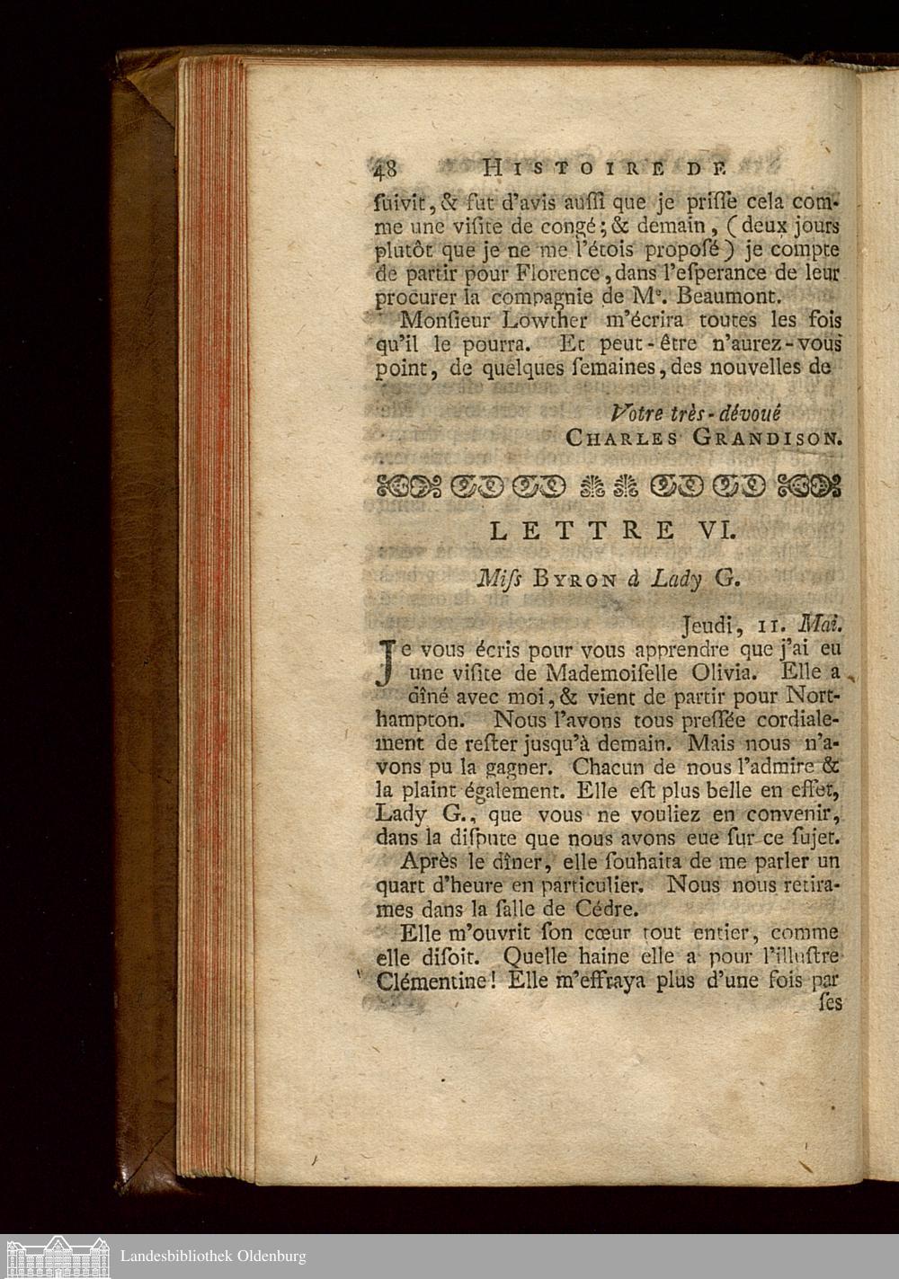 Lettre VI. Miss Byron à Lady G.