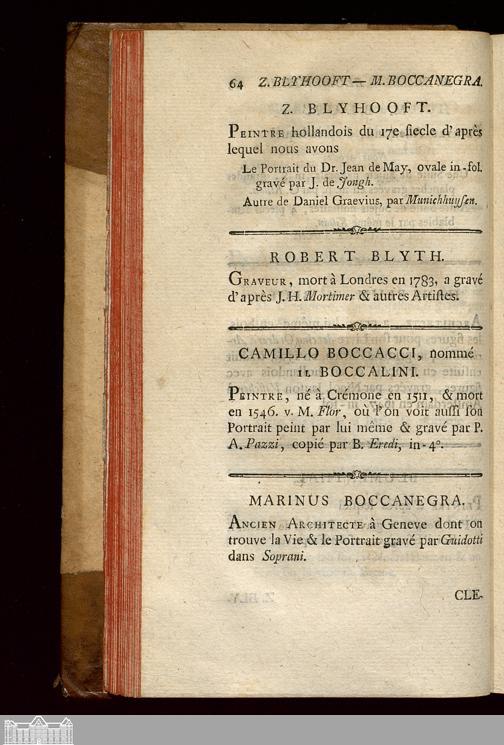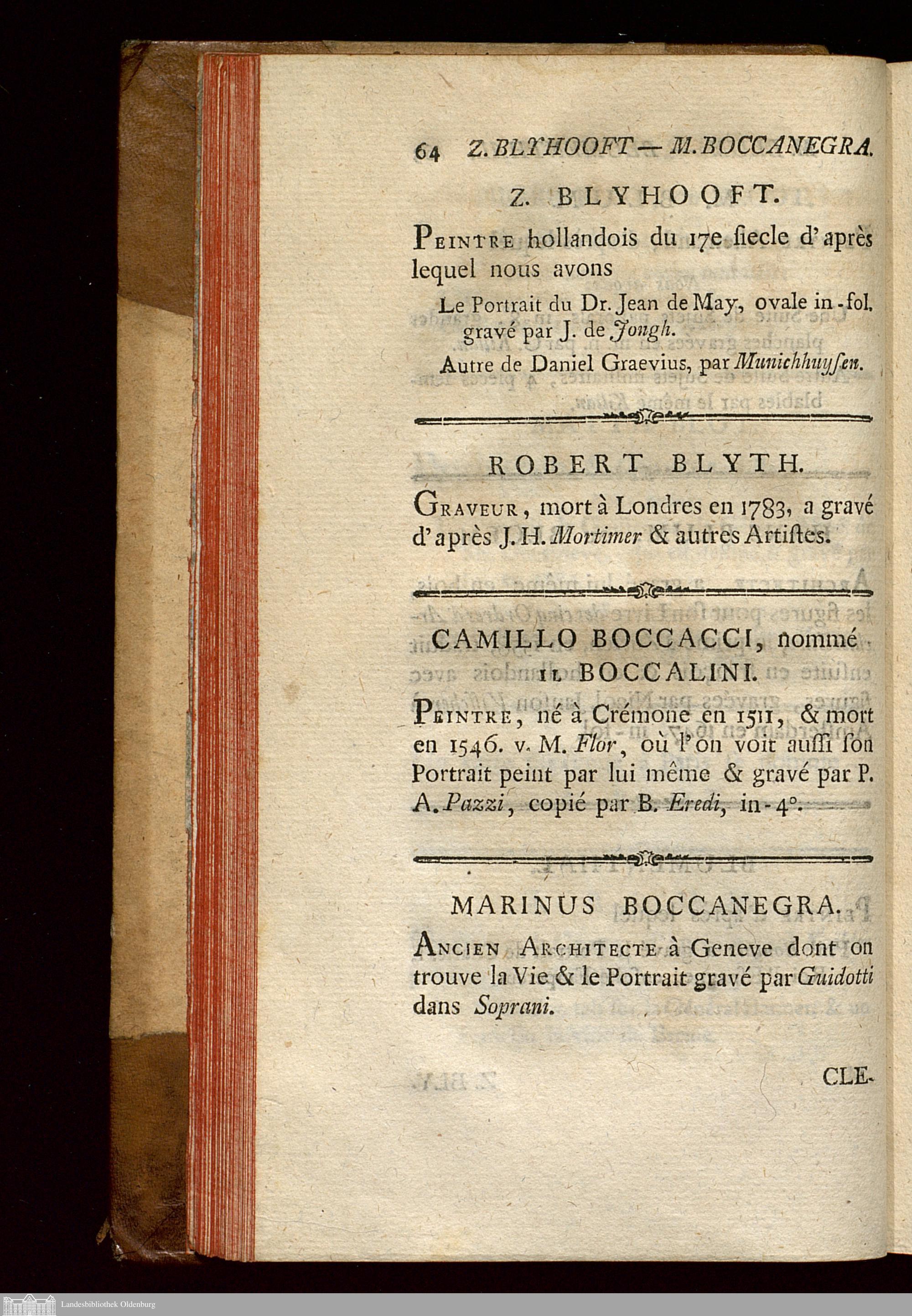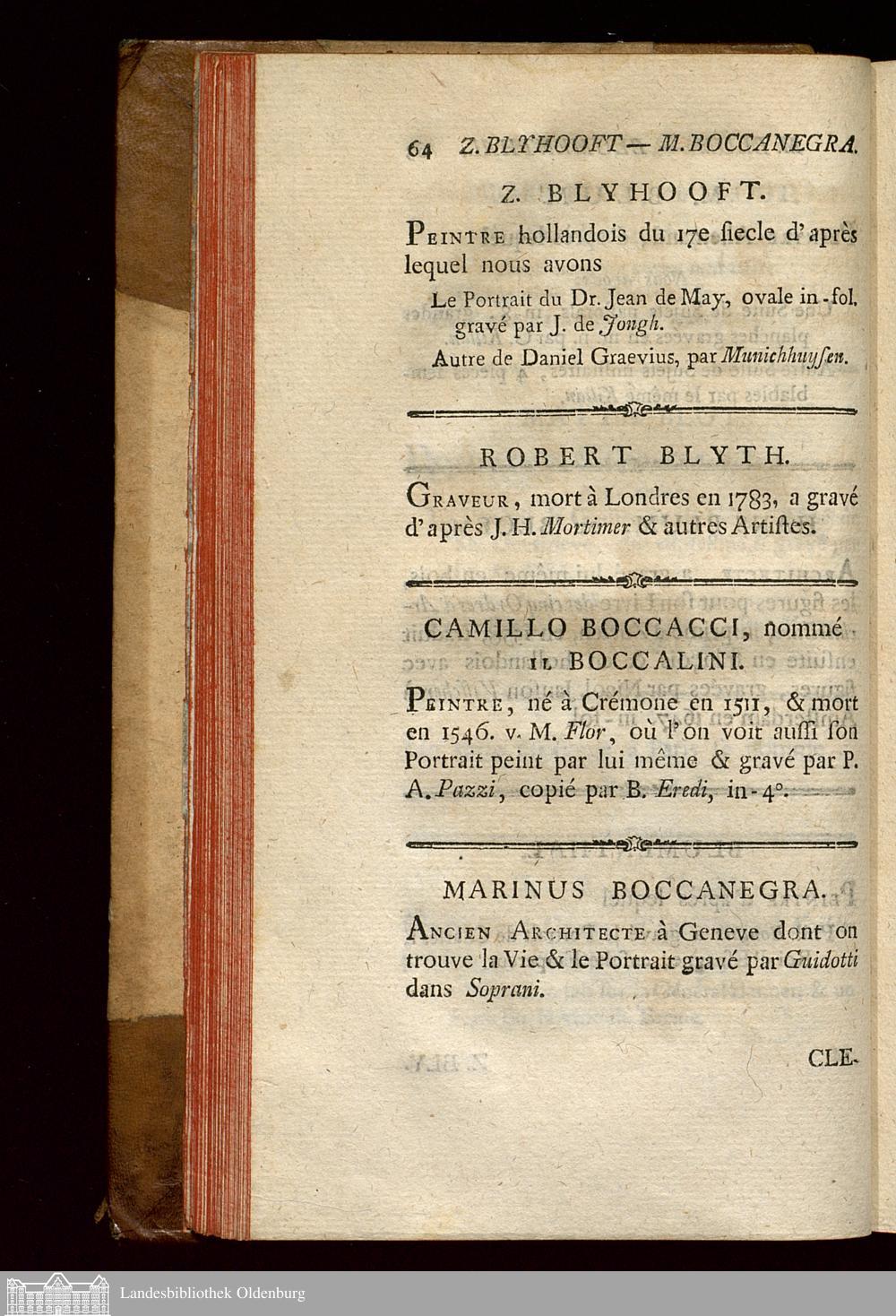 Z. BLYHOOFT - ROBERT BLYTH - CAMILLO BOCCACCI, nommé il BOCCALINI - MARINUS BOCC...