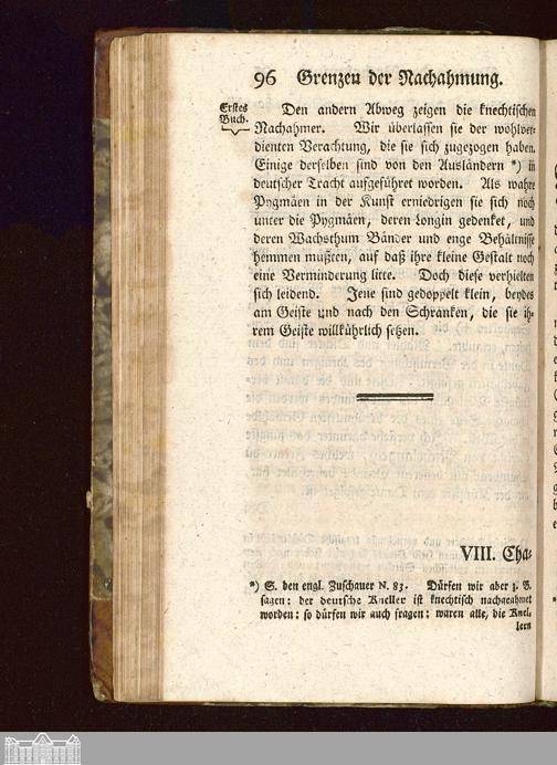 Erstes Buch. Grundsätze zur Bildung des Geschmacks des nachahmenden Künstlers.