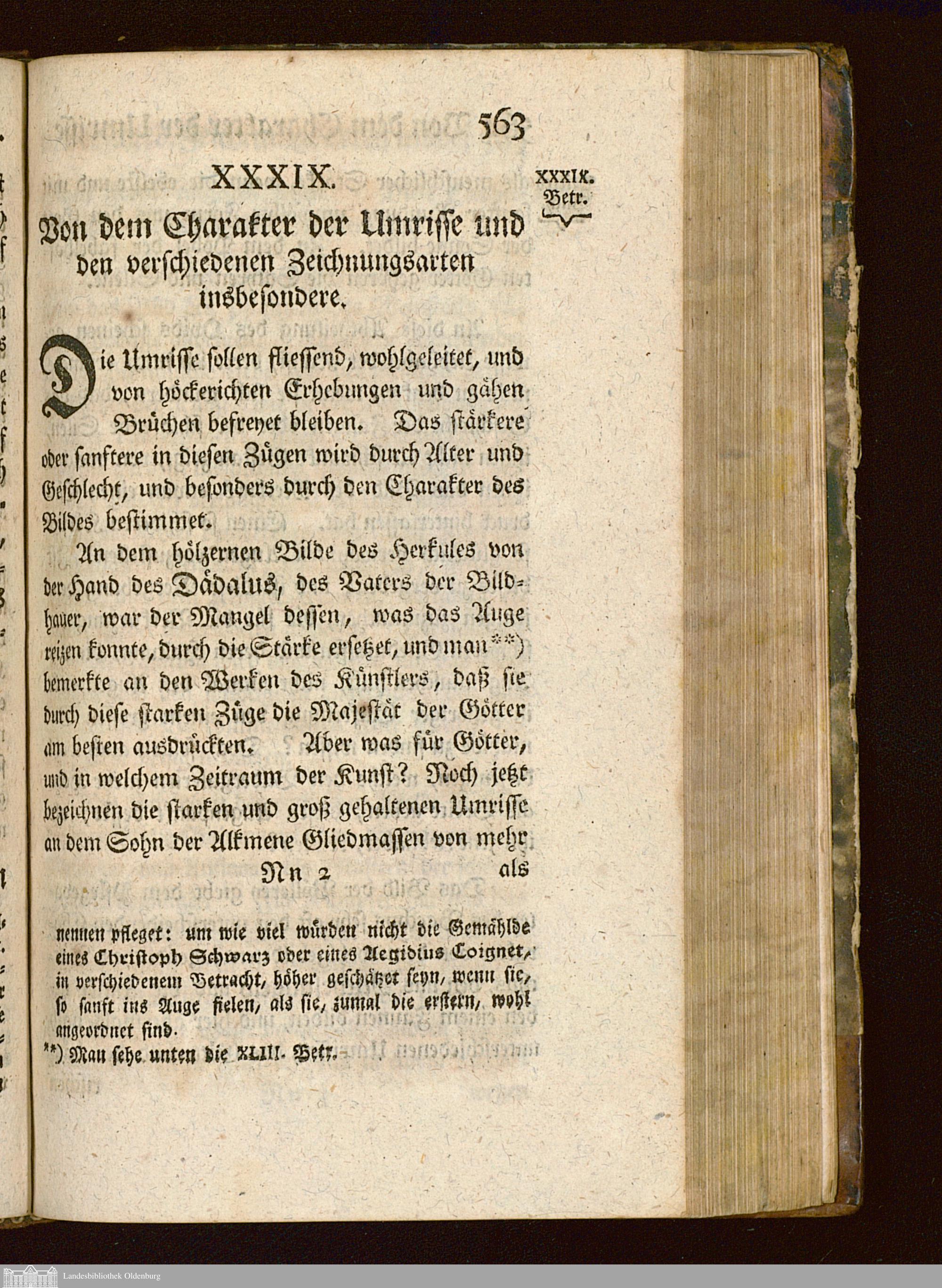 XXXIX. Von dem Charakter der Umrisse und den verschiedenen Zeichnungsarten insbe...