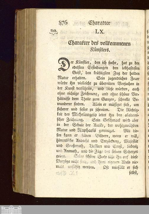 LX. Charakter des vollkommenen Künstlers.