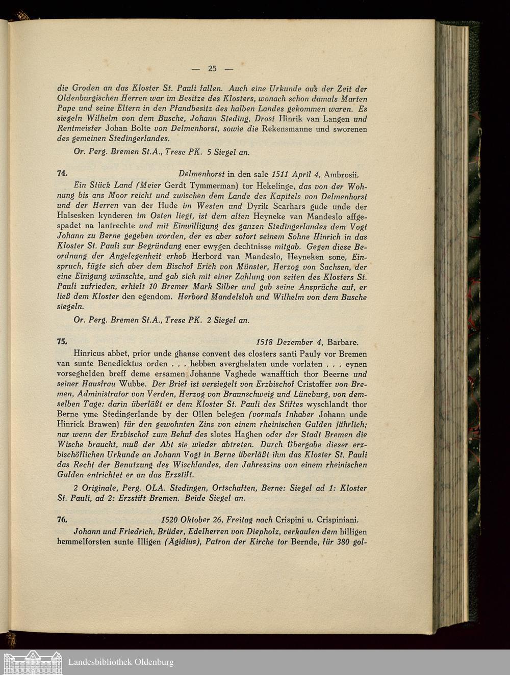 Bd. 7 (1934) Urkundenbuch der Kirchen und Ortschaften der Grafschaft Oldenburg / von Gustav Rüthning