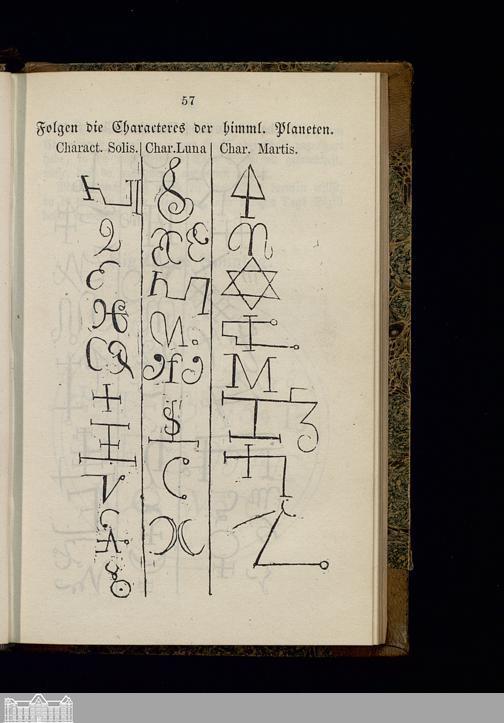 Nigromantisches Kunst-Buch, handelnd von der Glücks-Ruthe, dem Ring und der Krone Salomonis, den Fürsten-Geheimnissen, den dienstbaren Krystall- und Schatz-Geistern und andern wunderbaren Arcanen : Nach einer Handschrift aus der Bibliothek eines Fürst-Abtes im vorigen Jahrhundert wortgetreu und mit allen Abbildungen veröffentlicht : Der wahrhaftige englische Schlüssel Salomonis ... / Nach dem wahren Original verdeutscht und mit Abbildungen