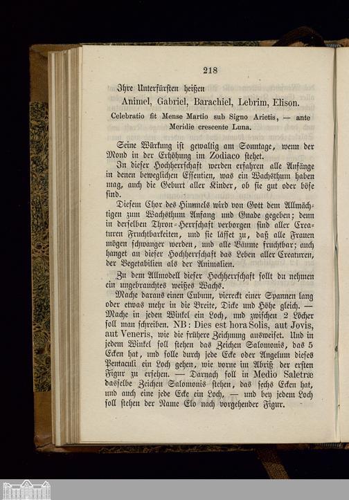 Nigromantisches Kunst-Buch, handelnd von der Glücks-Ruthe, dem Ring und der Krone Salomonis, den Fürsten-Geheimnissen, den dienstbaren Krystall- und Schatz-Geistern und andern wunderbaren Arcanen : Nach einer Handschrift aus der Bibliothek eines Fürst-Abtes im vorigen Jahrhundert wortgetreu und mit allen Abbildungen veröffentlicht : Der wahrhaftige englische Schlüssel Salomonis ... / Nach dem wahren Original verdeutscht und mit Abbildungen