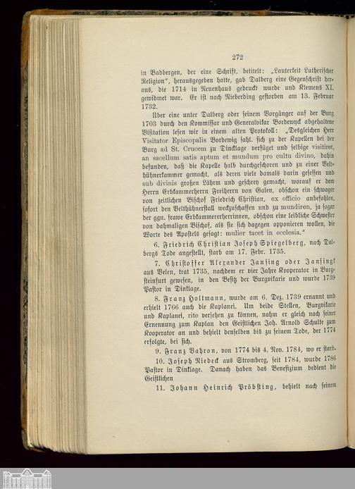 Fünftes Kapitel. Die Vikarie ad arces Dinklagenses sive ad paludes sub titulo St....
