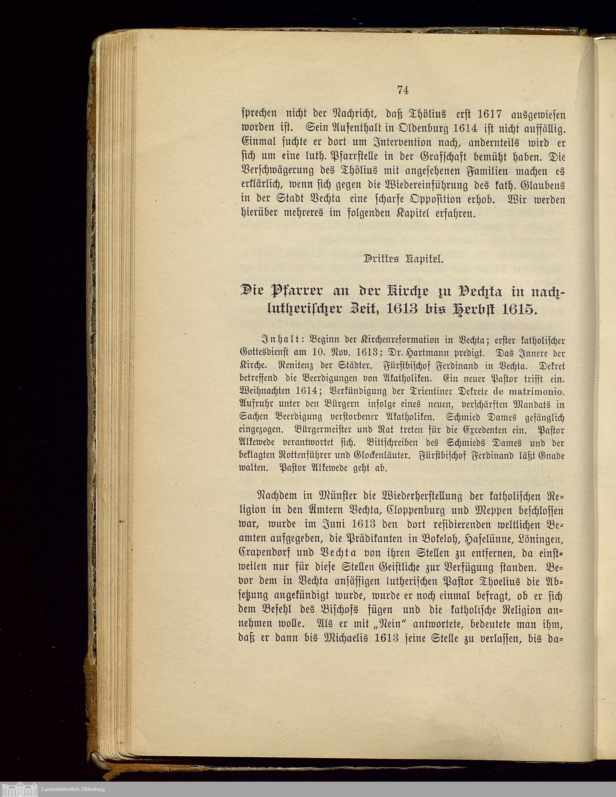 Drittes Kapitel. Die Pfarrer an der Kirche zu Vechta in nachlutherischer Zeit, 1613...