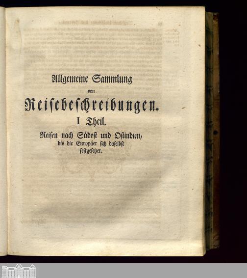Allgemeine Sammlung von Reisebeschreibungen. I. Theil. Reisen nach Südost und Ostindien,...
