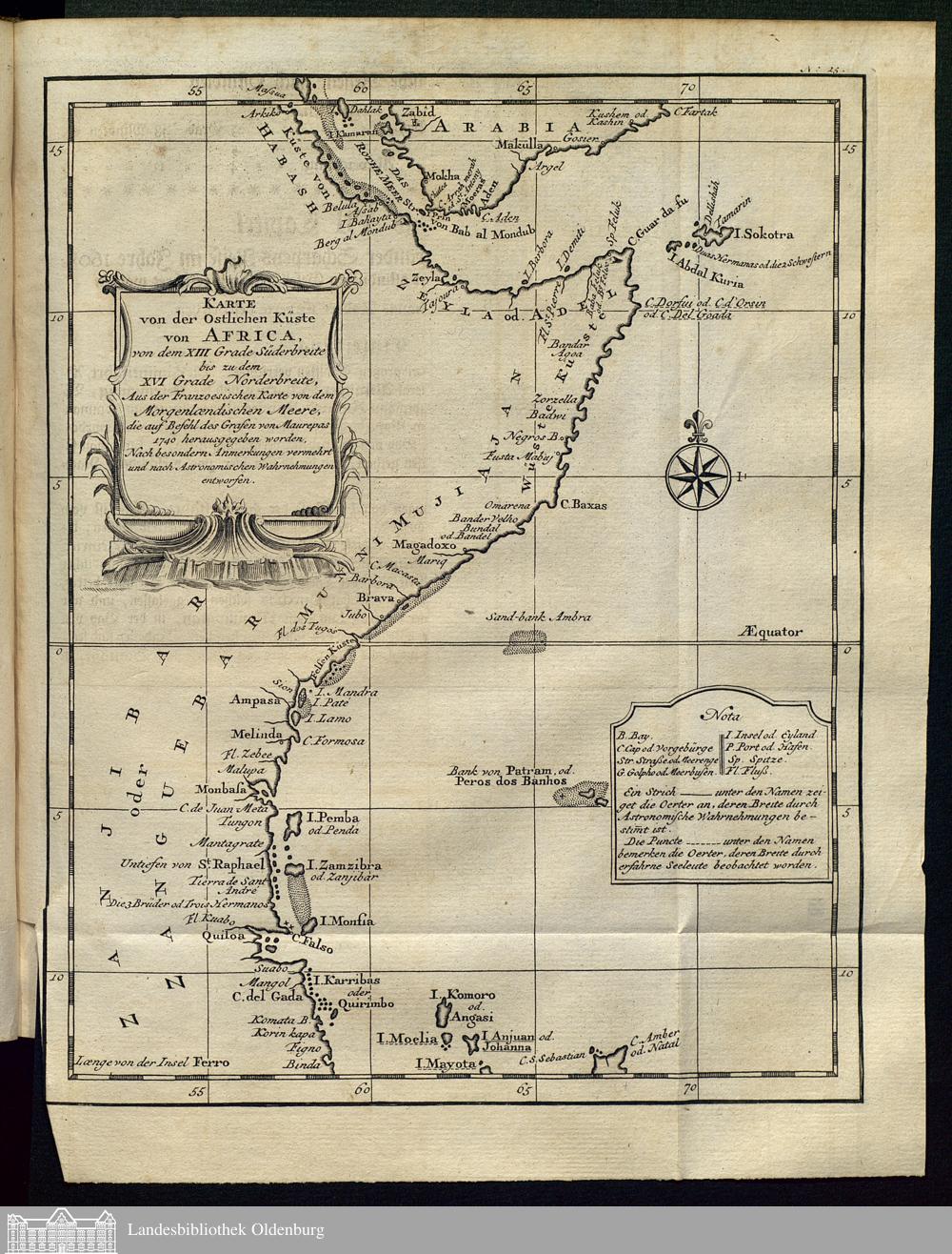 Karte von der ostlichen Küste von Africa, von dem XIII Grade Süderbreite bis zu dem...
