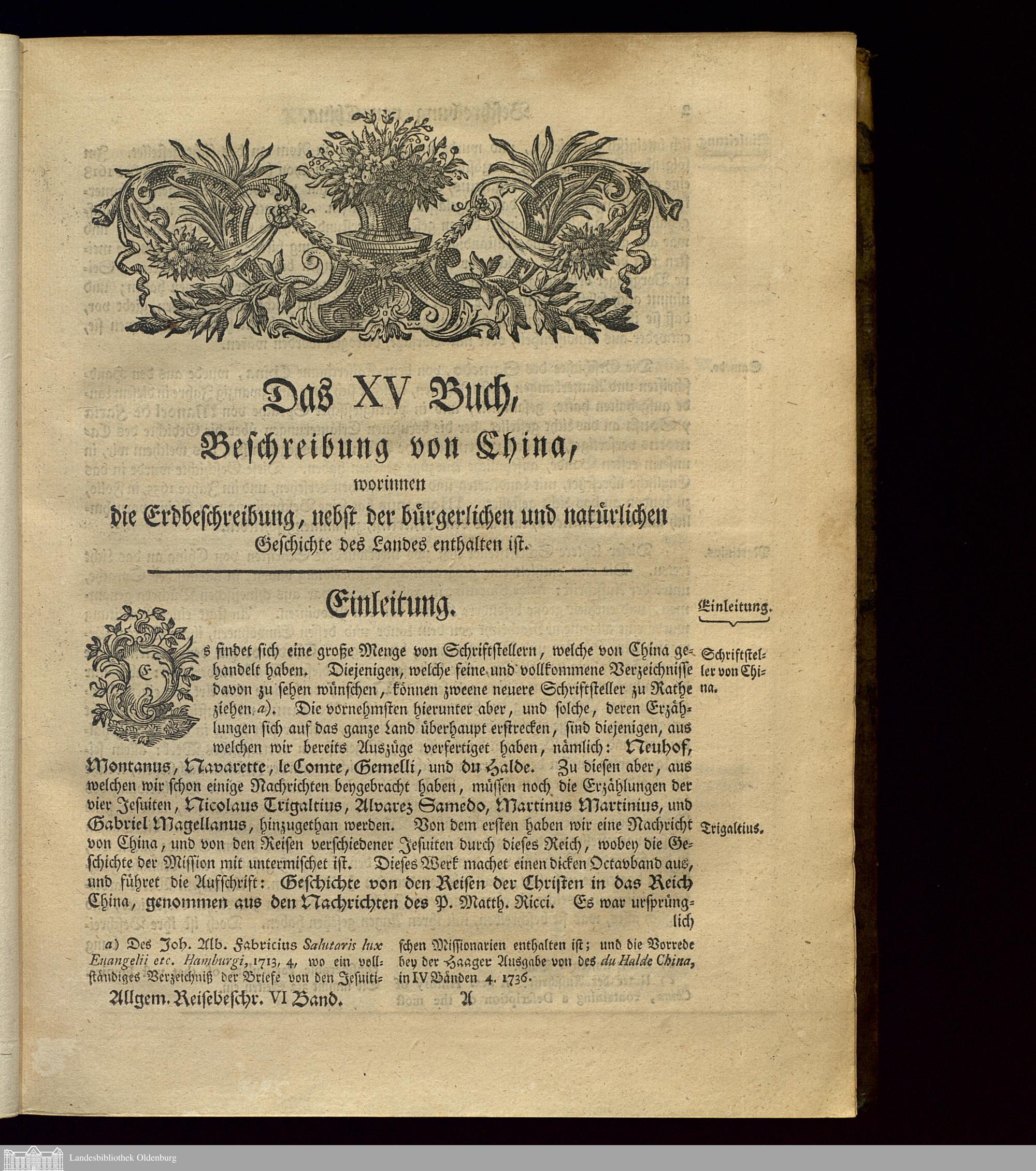 Das XV Buch, Beschreibung von China, worinnen die Erdbeschreibung, nebst der bürgerlichen...