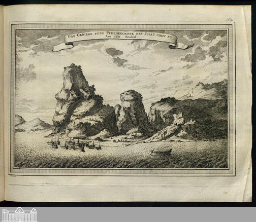 Illustration: Das Gebirge Fünf Pferdekoepfe bey Chau Chew Fu.