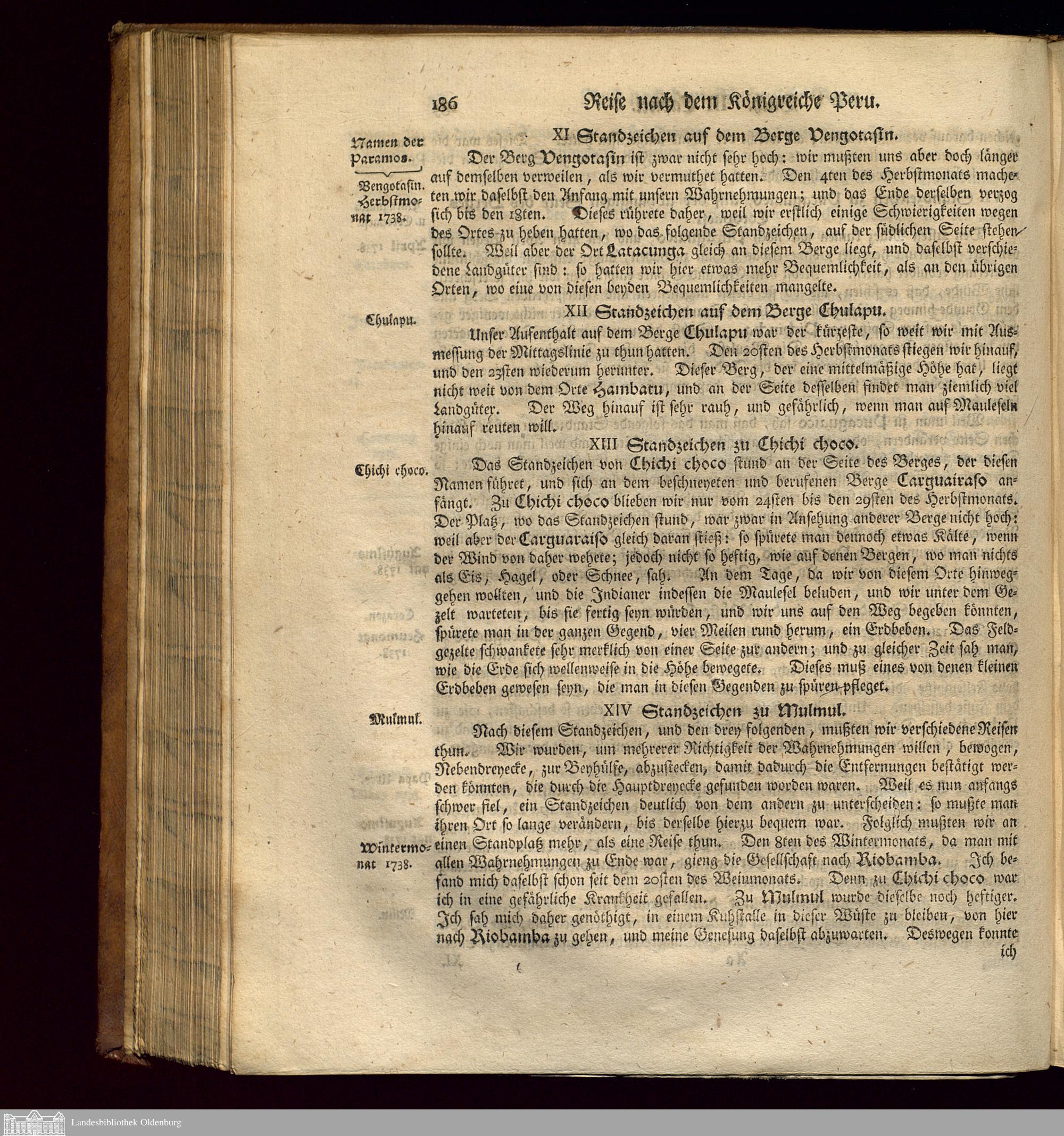 Das V Buch. Reise von Guayaquil nach der Stadt Quito. Messung der Mittagslinie in...