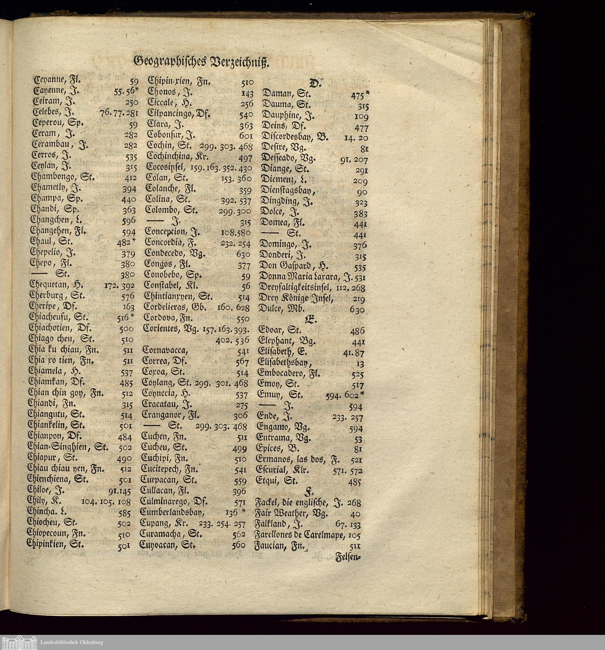 Geographisches Verzeichniß der in diesem Bande vorkommenden Länder, Inseln, Städte...