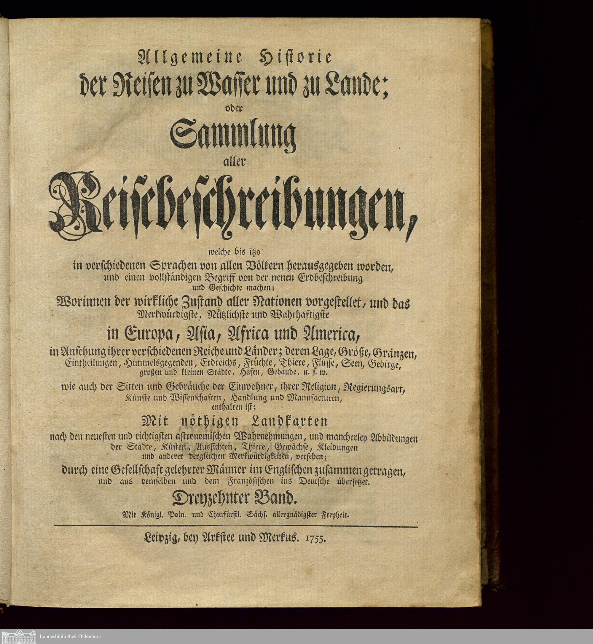 Allgemeine Historie der Reisen zu Wasser und Lande; oder Sammlung aller Reisebeschreibungen,...