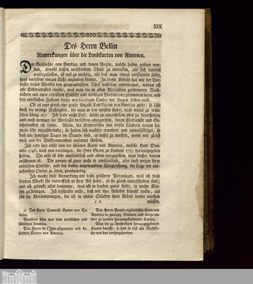 Des Herrn Bellin Anmerkungen über die Landkarten von America.