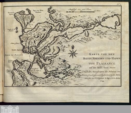 Karte von den Bayen, Rheeden und Hafen von Plaisance auf der Insel Terre Neuve.