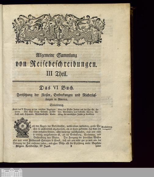 Allgemeine Sammlung von Reisebeschreibungen. III Theil. Das VI Buch. Fortsetzung...