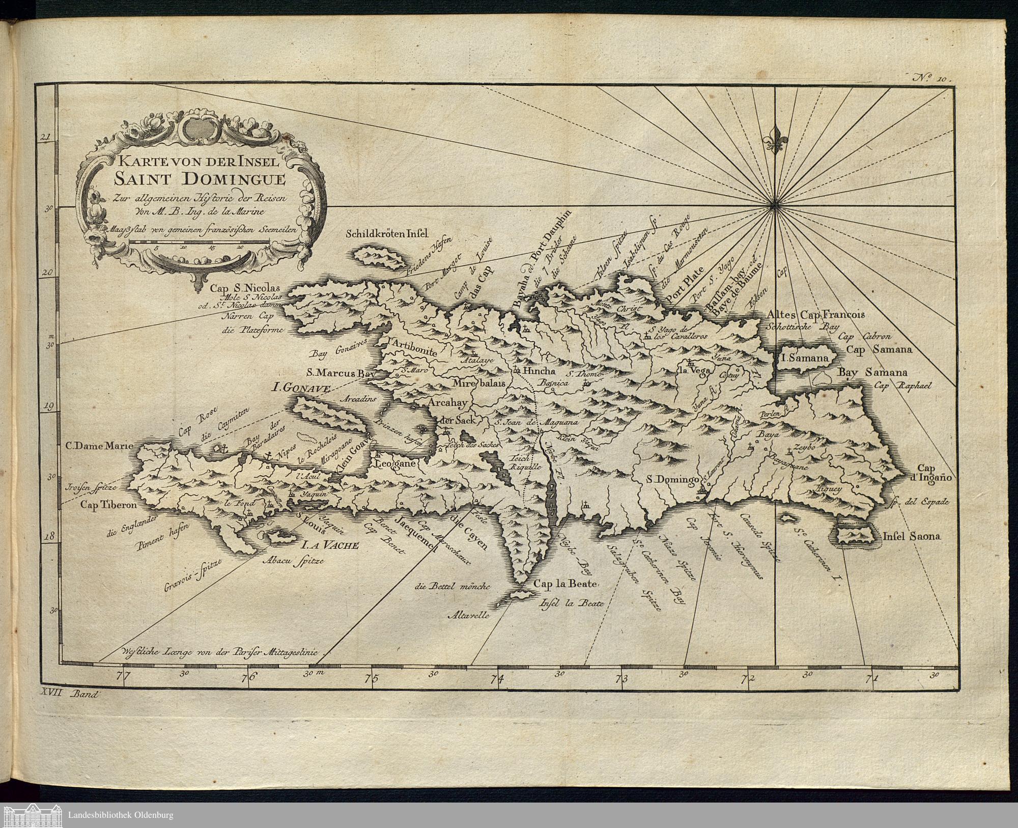 Karte von der Insel Saint Domingue.