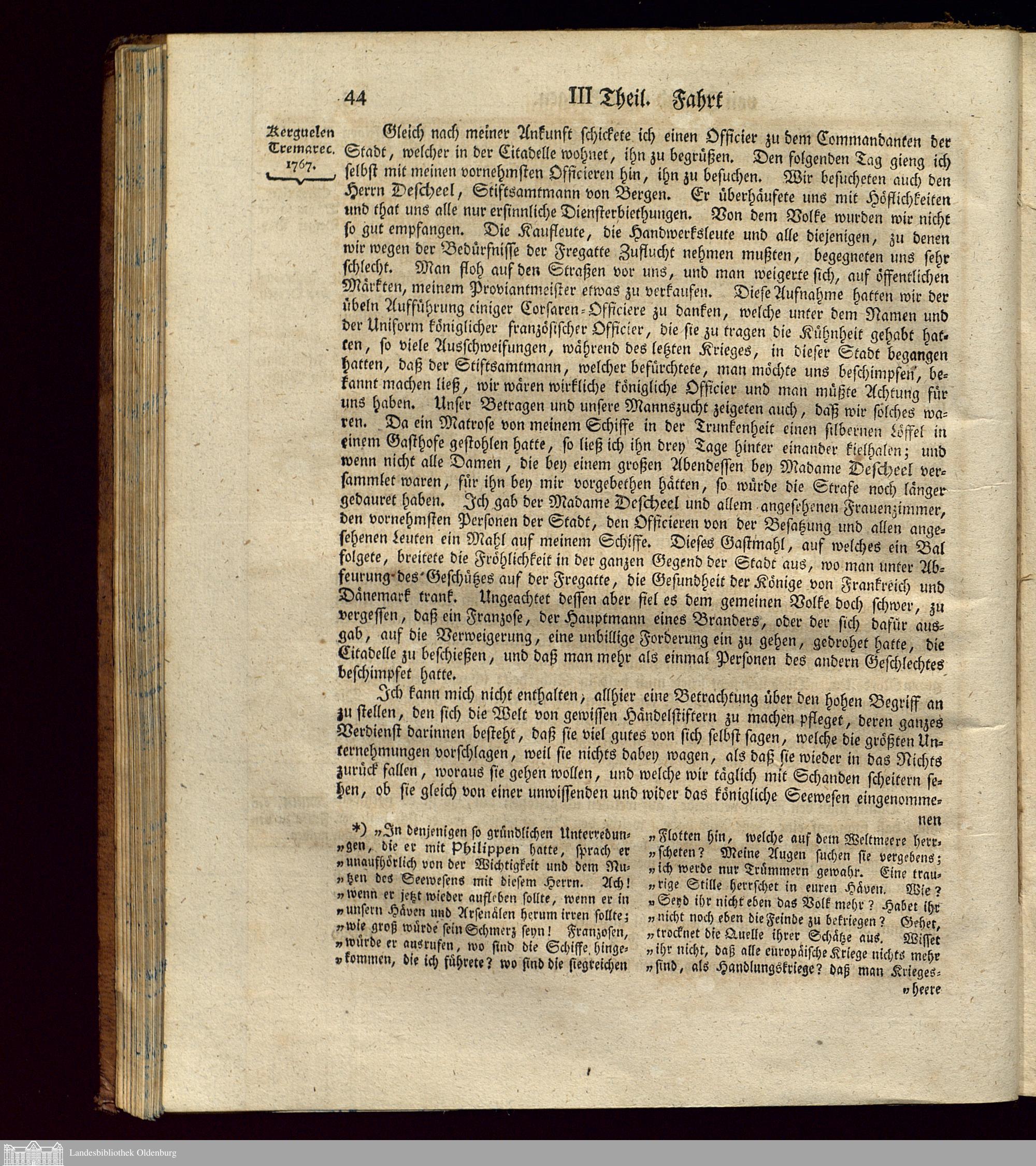 Fortsetzung der allgemeinen Sammlung von Reisen. Des Herrn de Kerguelen Tremarec...