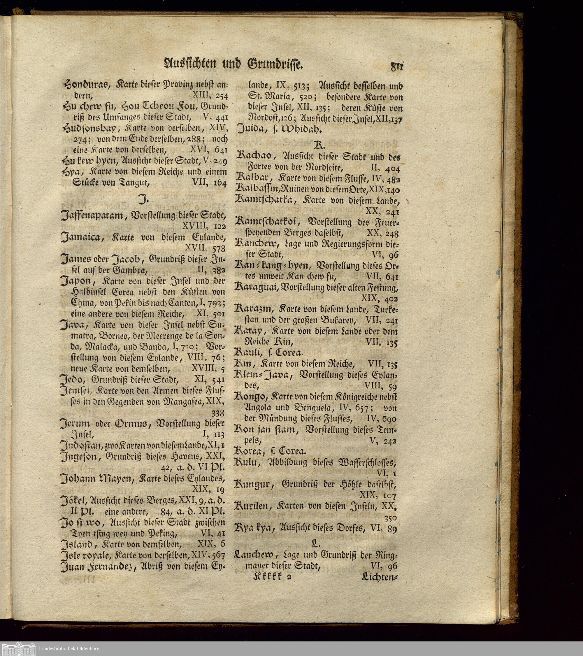 Alphabetische Anzeige aller derer Karten, Aussichten und Grundrisse, welche in dieser...