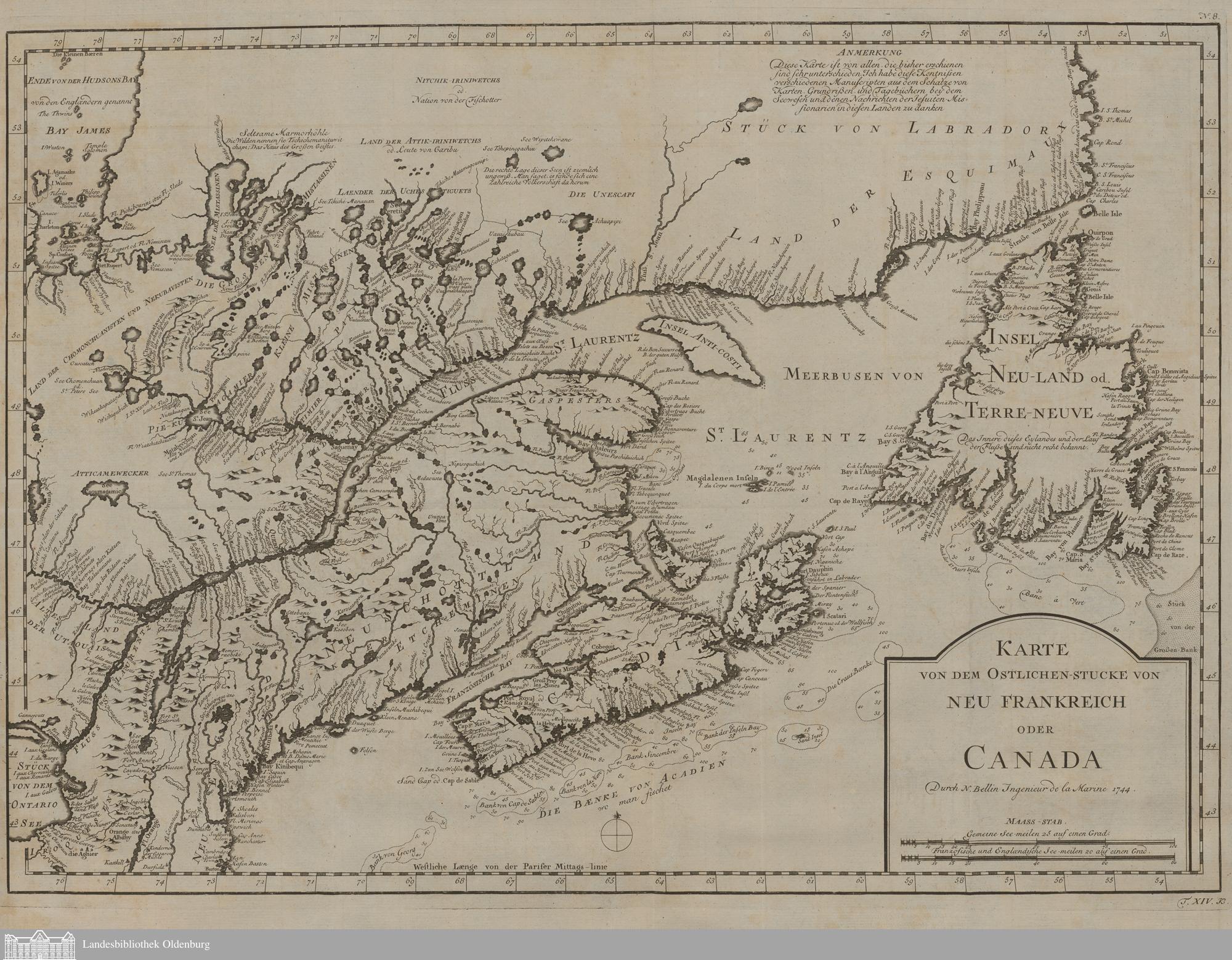 Karte von dem Ostlichen-Stucke von Neu Frankreich oder Canada.