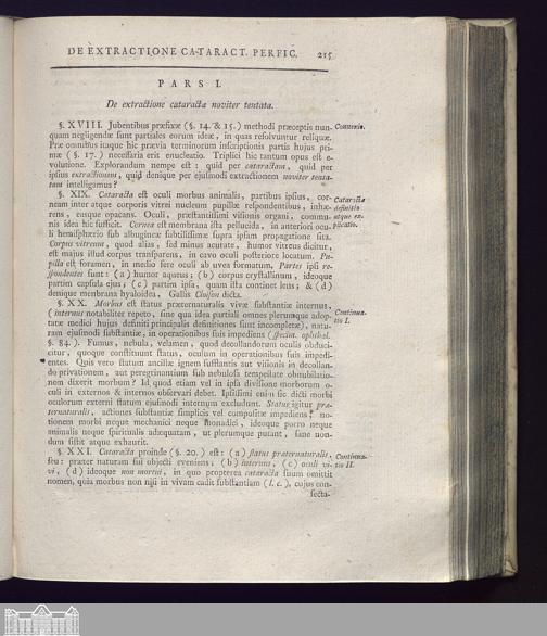 Pars I. De extractione cataractae noviter tentata.