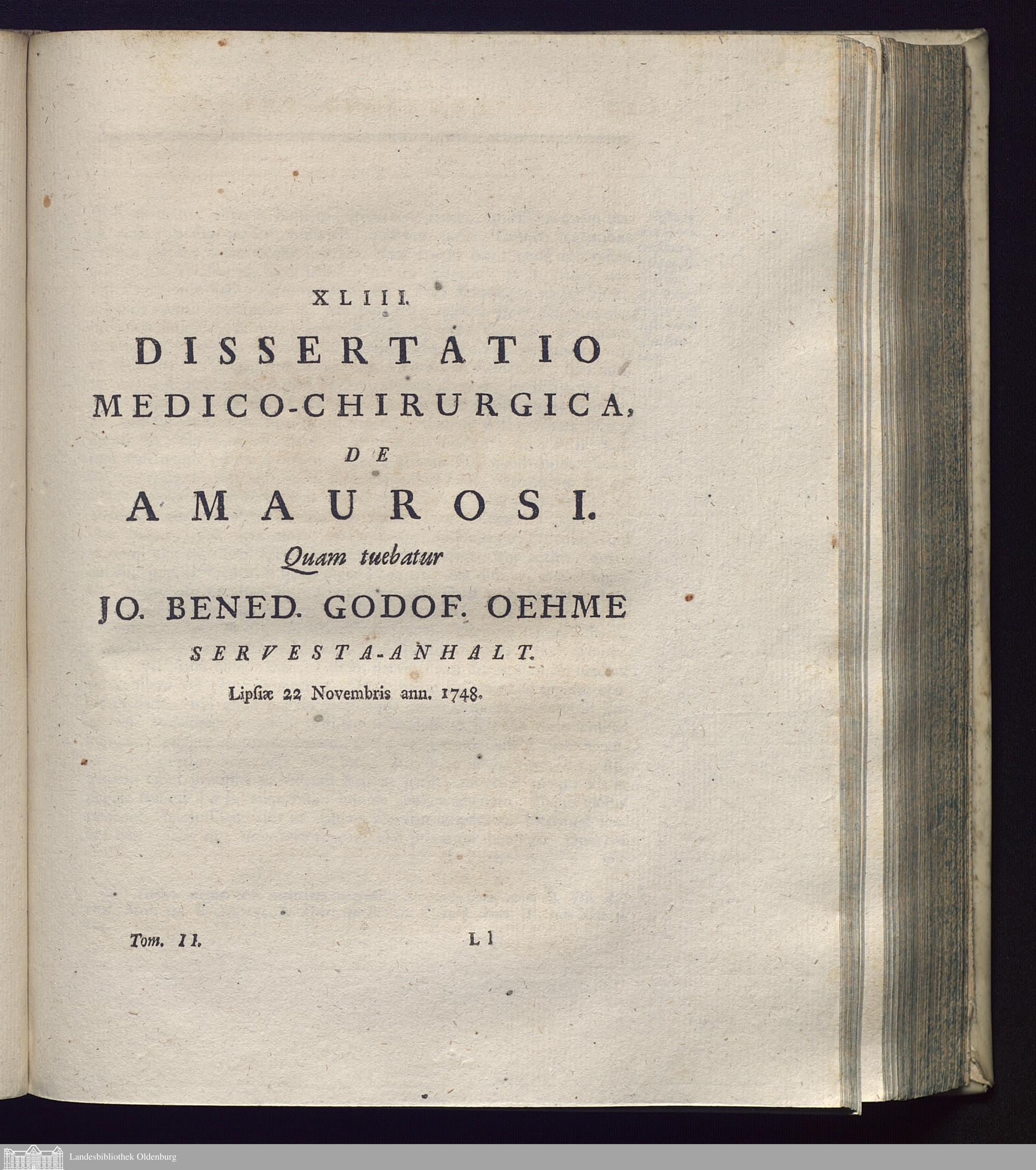 XLIII. Dissertatio Medico-Chirurgica, De Amaurosi.