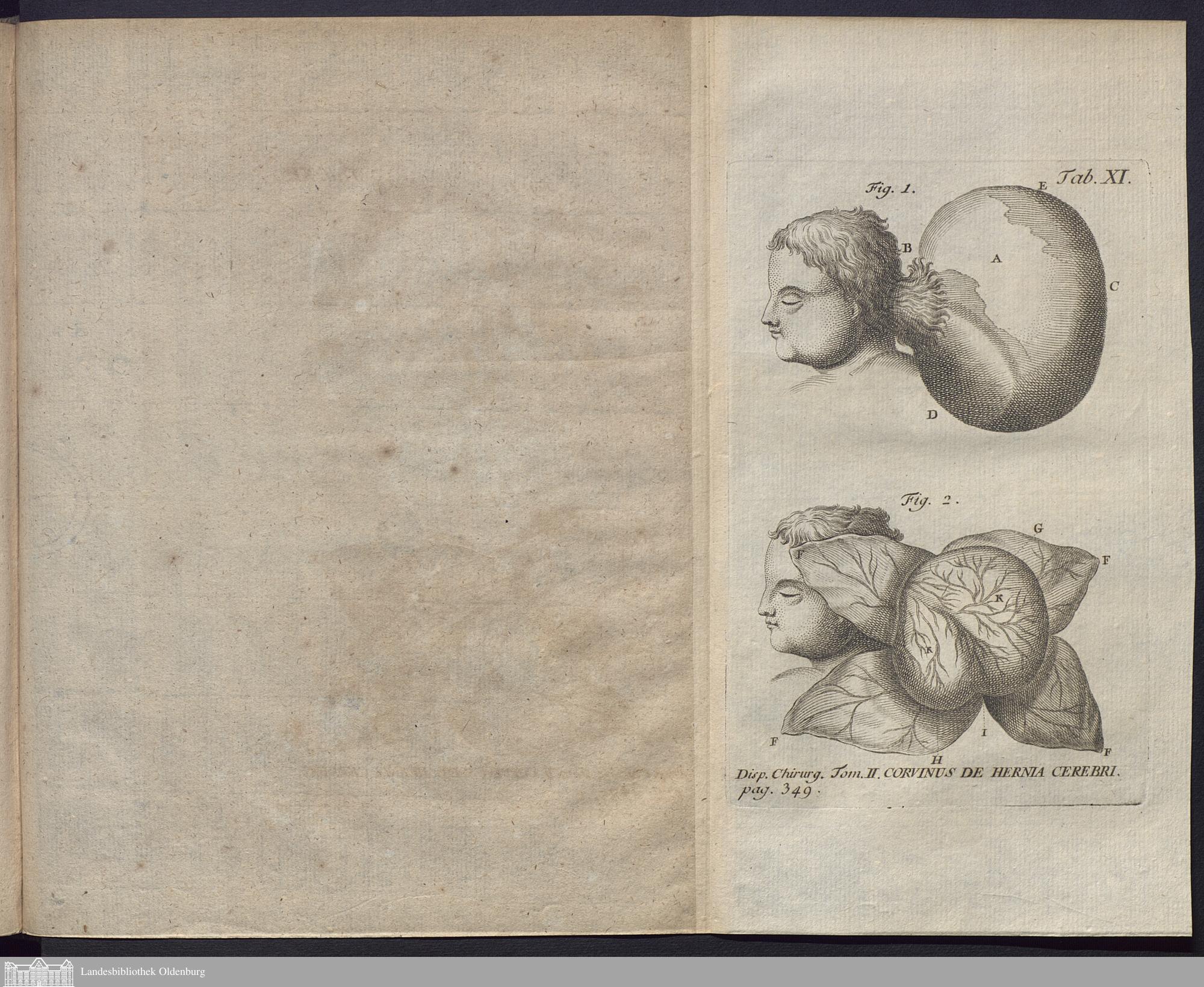 Illustration: Tab. XI. Disp. Chirurg. Tom. II. Corvinus De Hernia Cerebri.