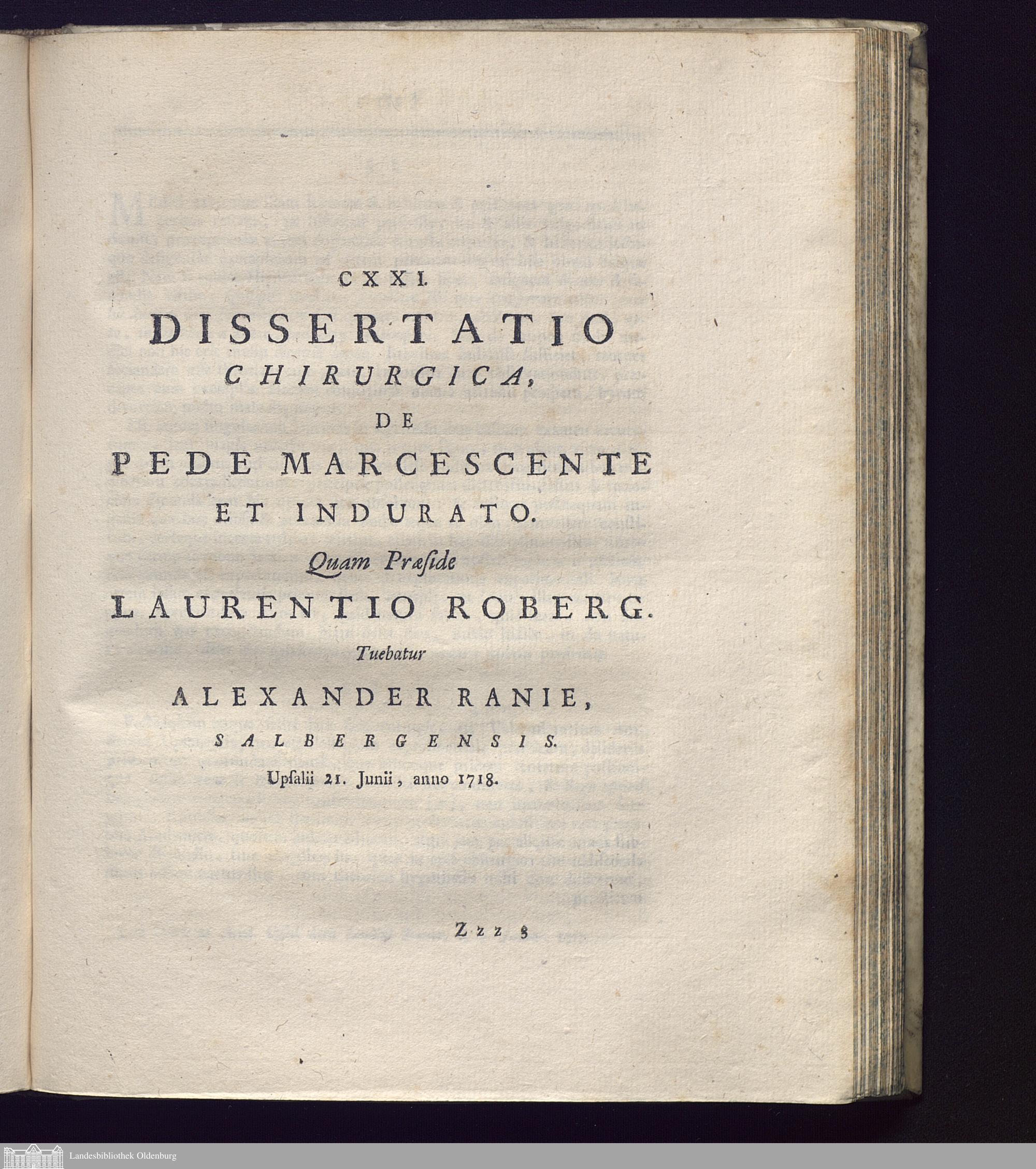 CXXI. Dissertatio Chirurgica, De Pede Marcescente Et Indurato.