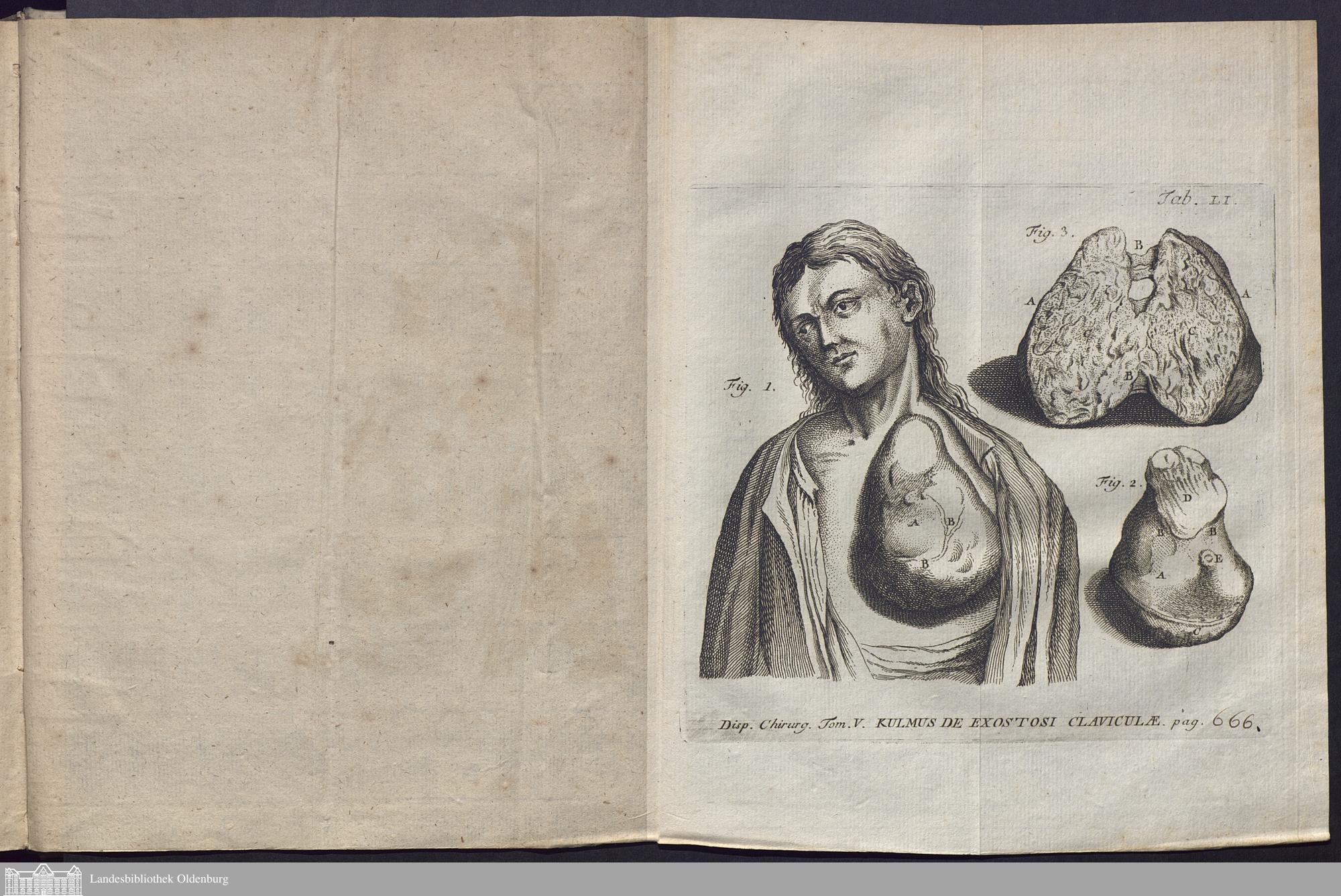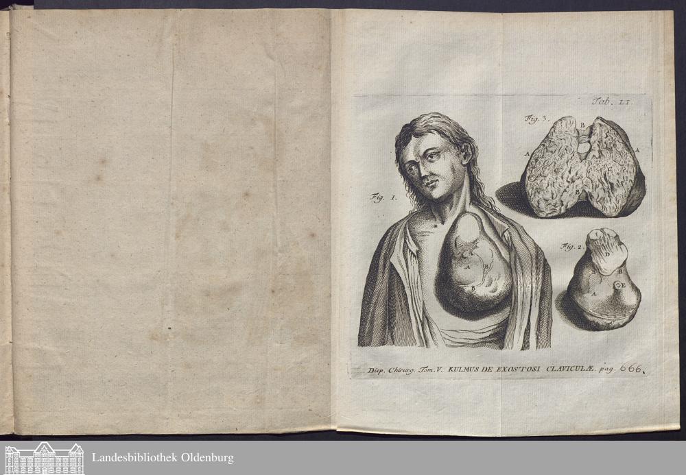 Illustration: Tab. LI. Disp. Chirurg. Tom. V. Kulmus De Exostosi Claviculae.