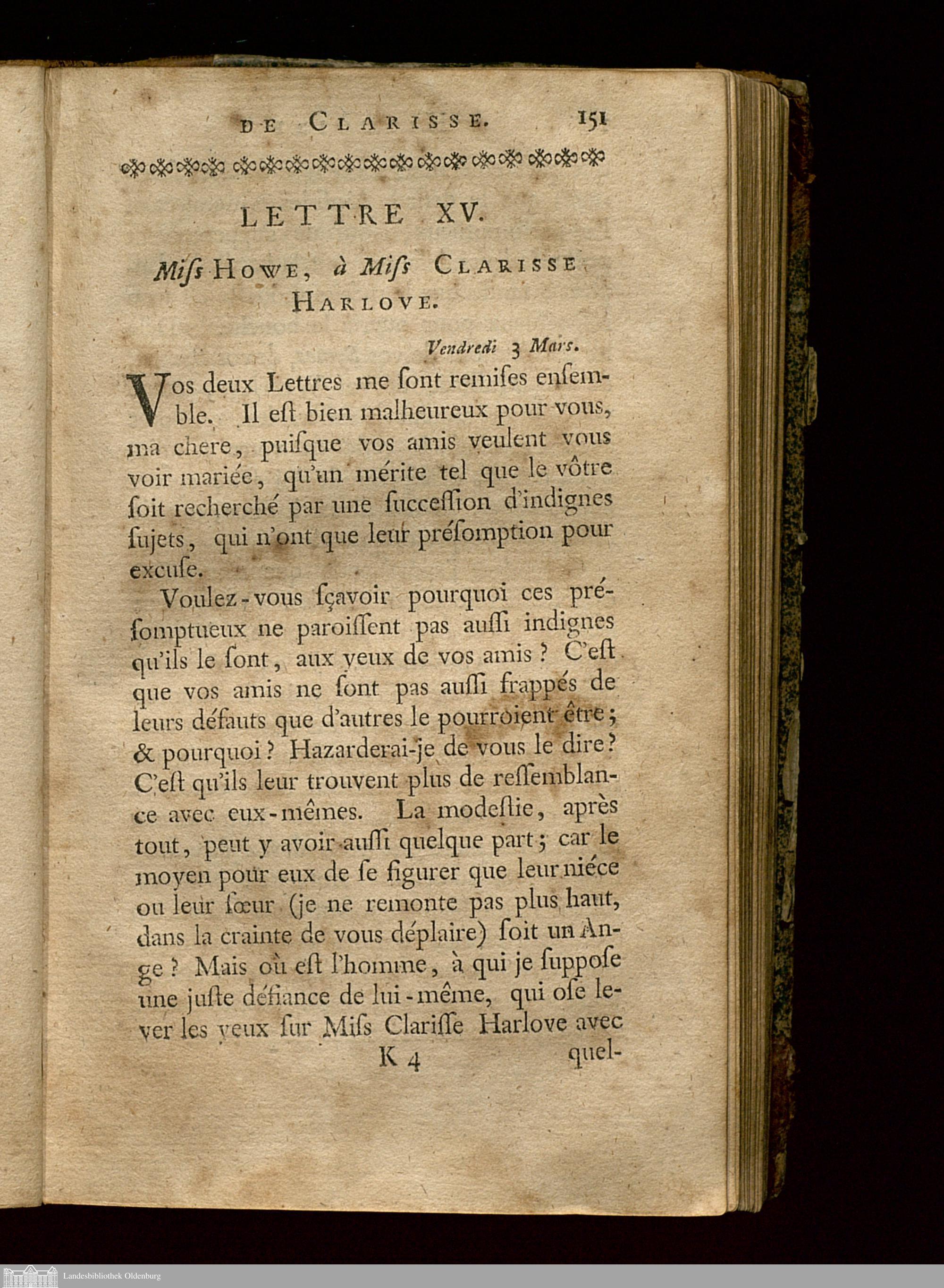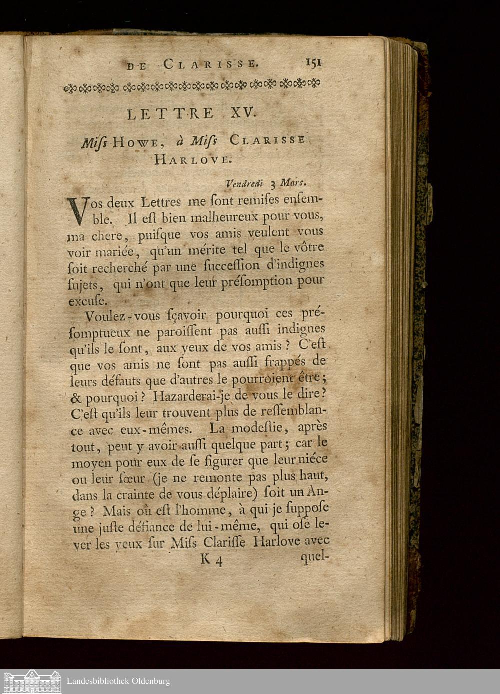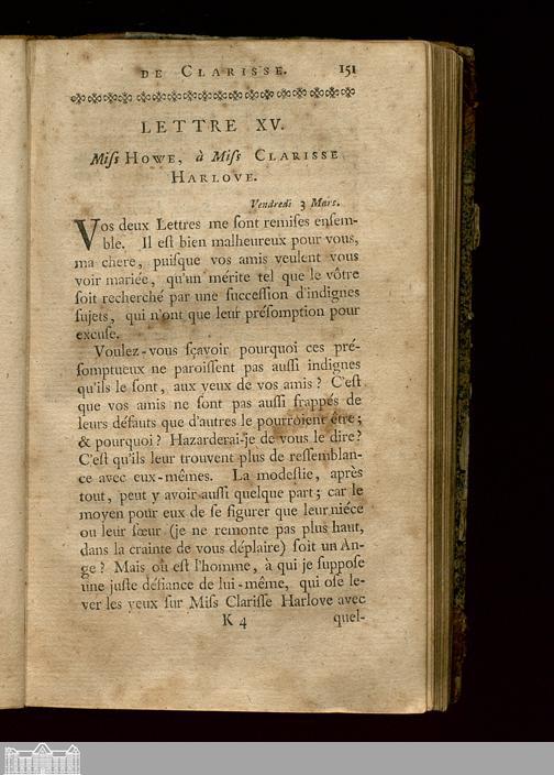 Lettre XV. Miss Howe, à Miss Clarisse Harlove.