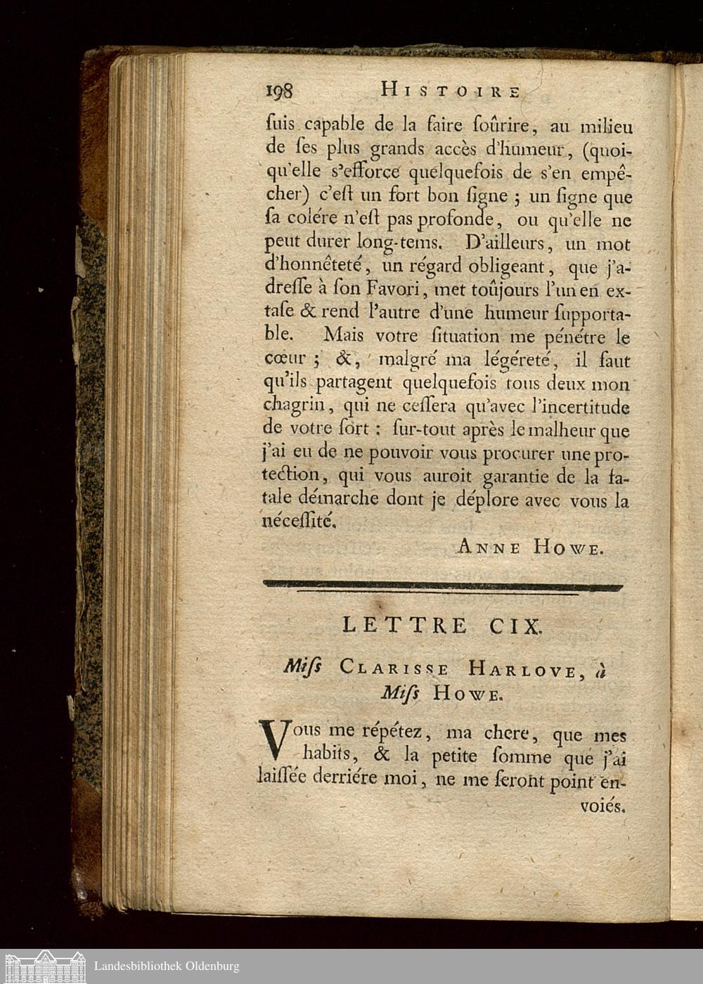 Lettre CIX. Miss Clarisse Harlove, à Miss Howe.