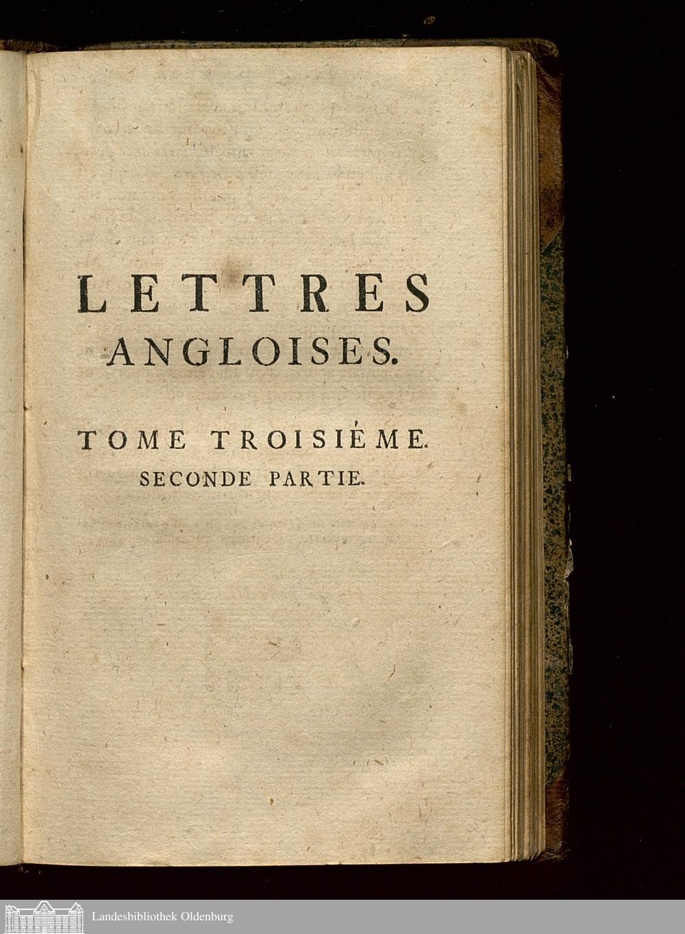 Lettres Angloises. Tome Troisieme. Seconde Partie.