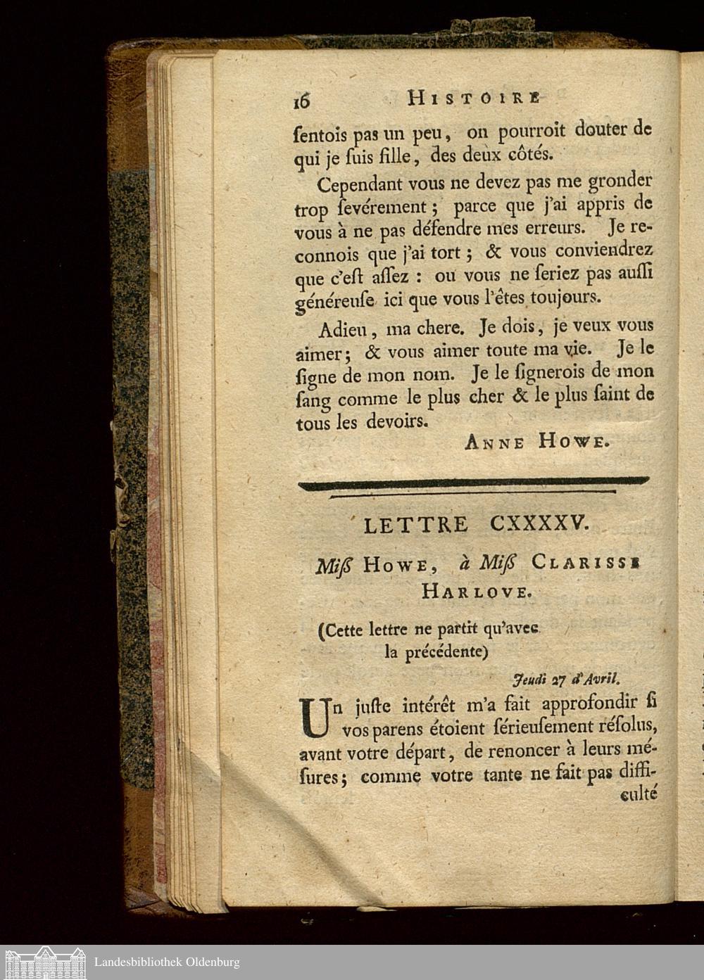 Lettre CXXXXV. Miß Howe, à Miß Harlove.