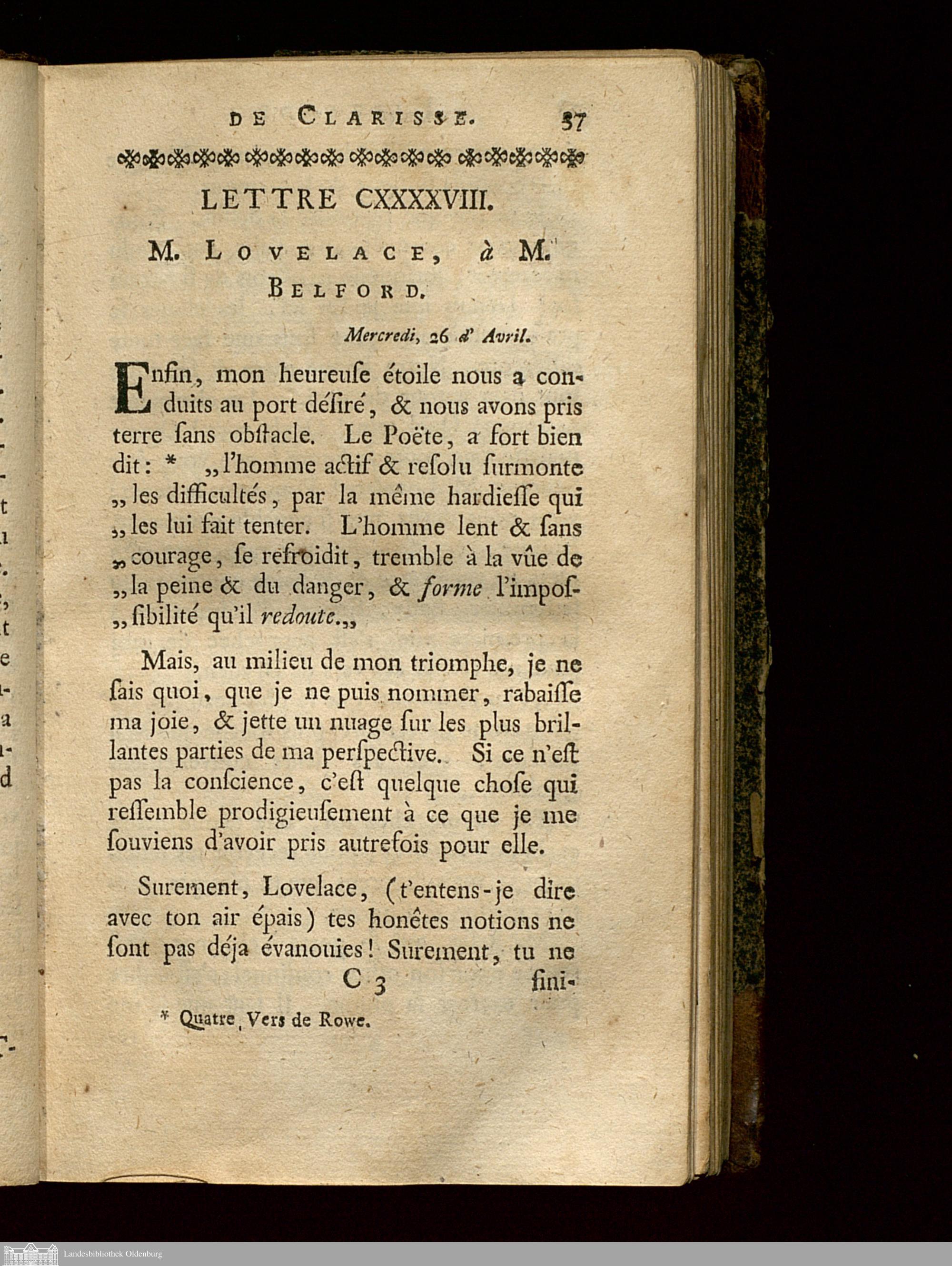 Lettre CXXXXVIII. M. Lovelace, à M. Belford.