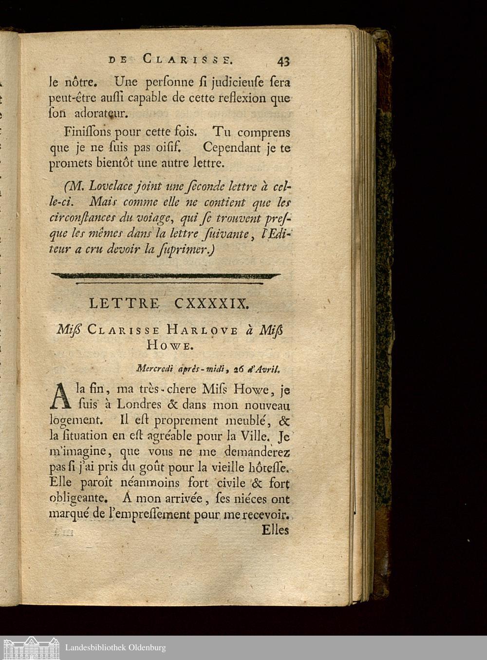 Lettre CXXXXIX. Miß Clarisse Harlove à Miß Howe.