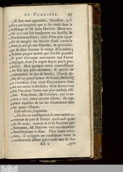 Lettre CCV. M. Lovelace, à M. Belford.